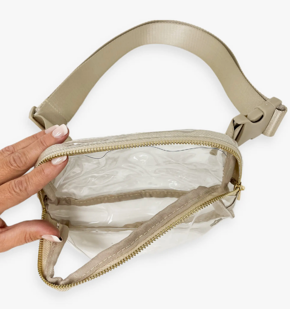 All Clear Policy Stadium approved! This product allows you to be hands-free and carry all you need! There is an interior pocket as well to hold your essentials in place. Perfect for sporting events, concerts, and music festivals.