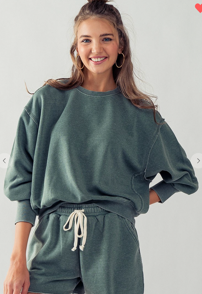 Our Long sleeve crew neckline drop shoulder sweatshirt with rib cuffs and hem! So comfy and such great colors!