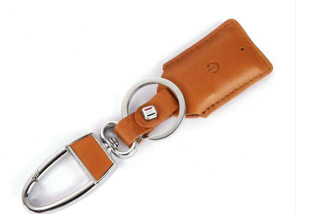 Stylishly keep tabs on your keys and phone with our leather Bluetooth keychain tracker!