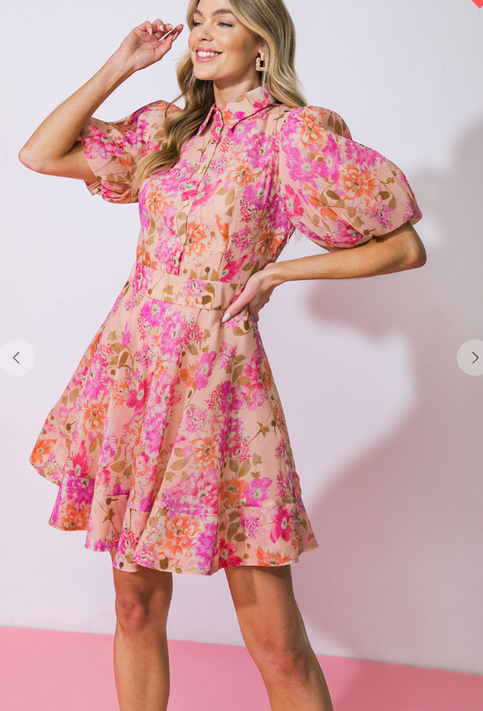 functional button down, short puff sleeve, full skirt