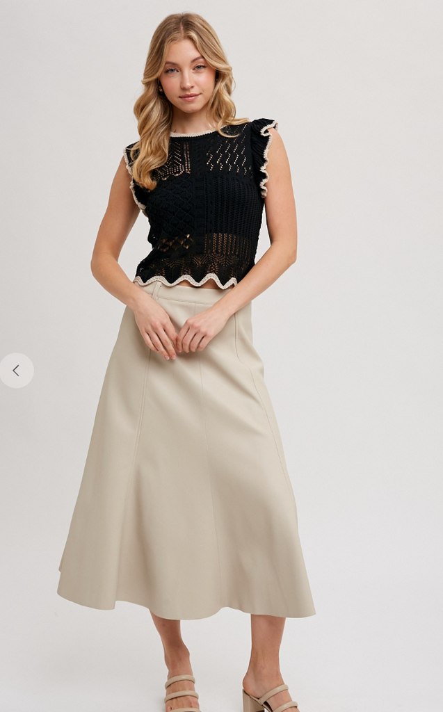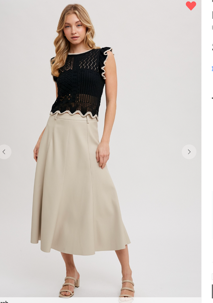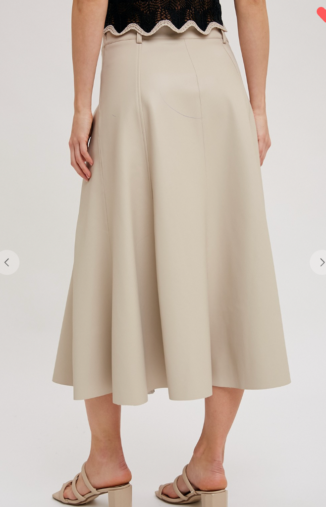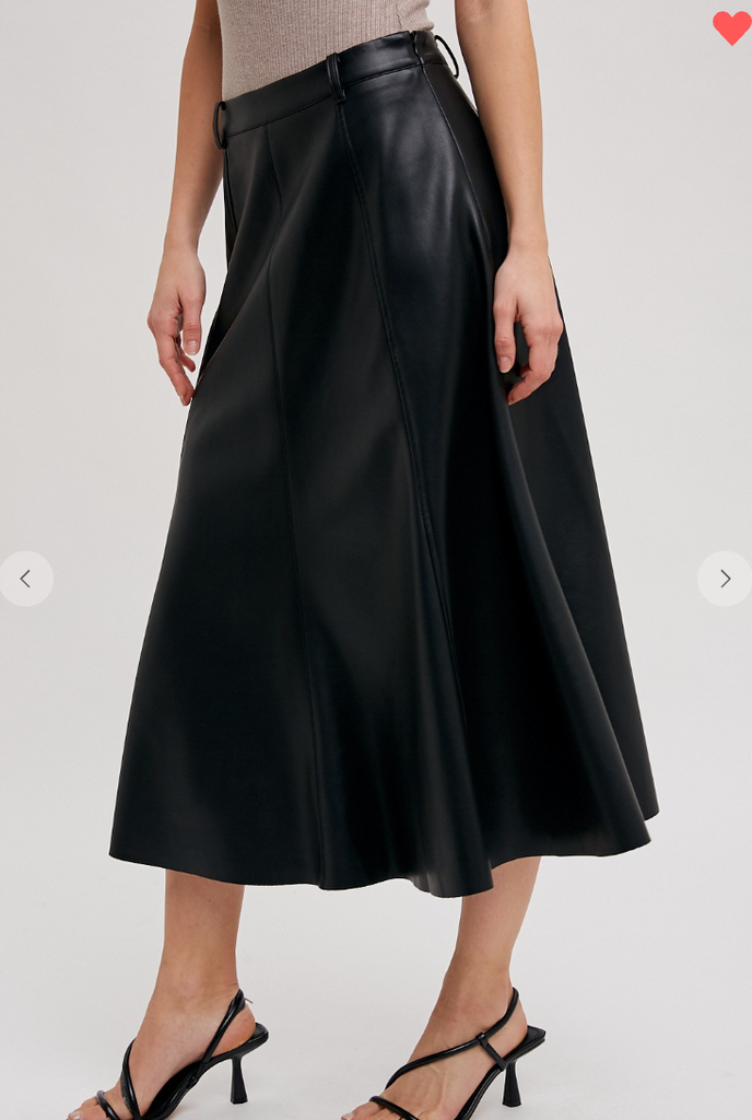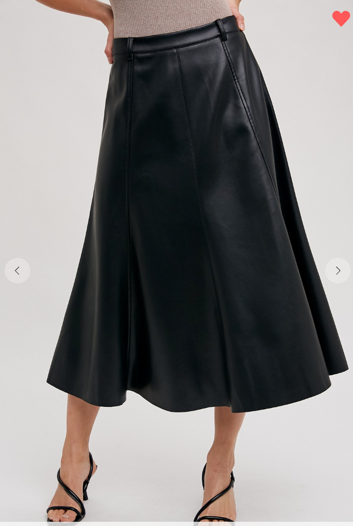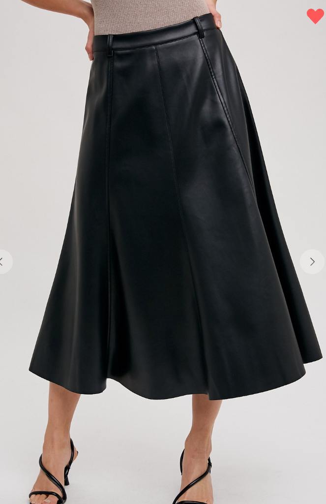 The Faux Leather Flare Midi Skirt is a chic and versatile piece