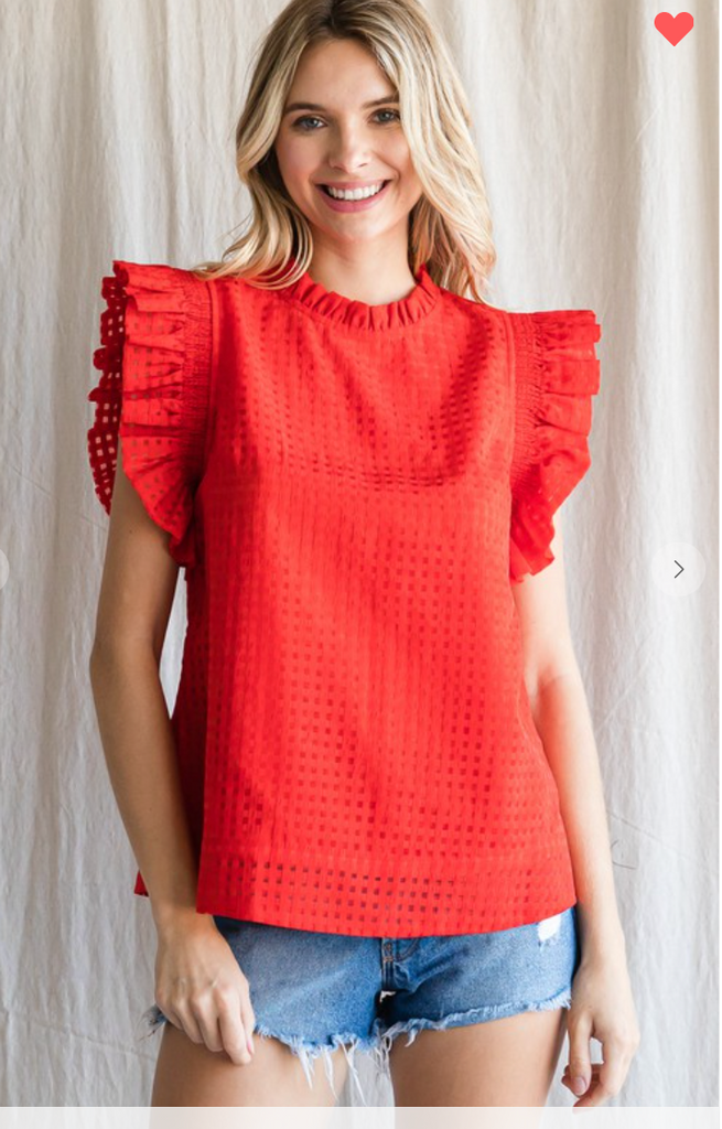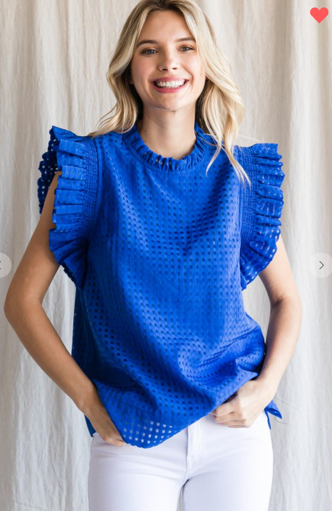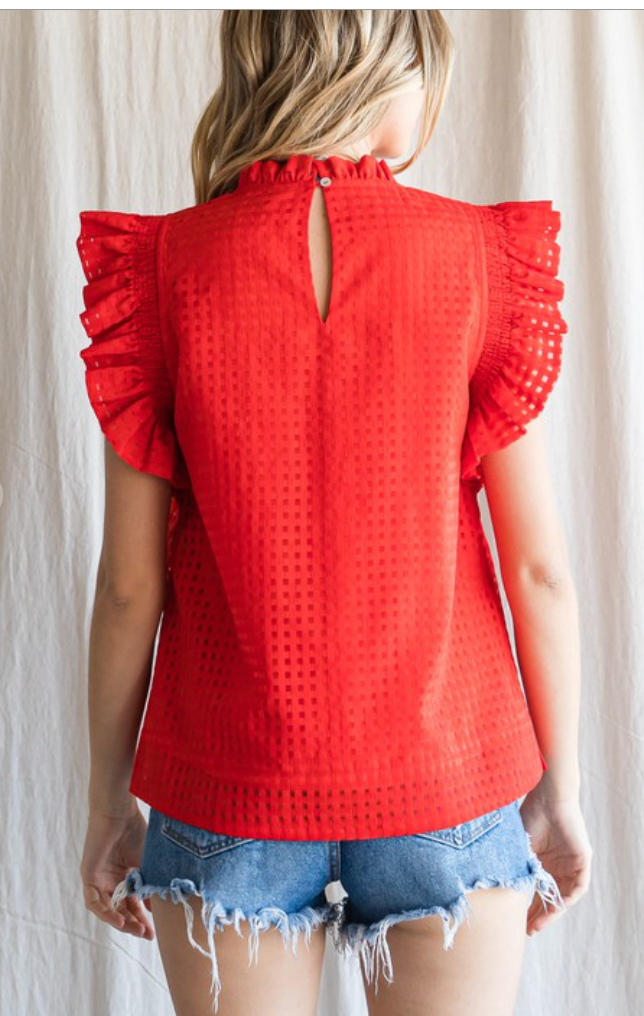 back key hole, smocked ruffled shoulder, cuffed hemline! wear for 4th of Jyly