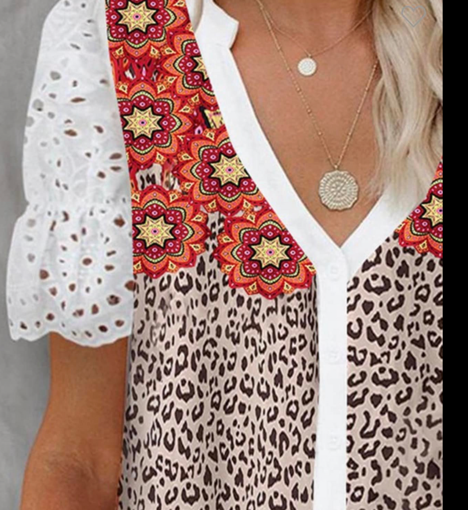 This top fits that Order! It is a printed Poly with lots of mixed patterns and prints! Love the Fall colors but yet the Summer style so you can be cool but look like you are transitioning to Fall perfectly!