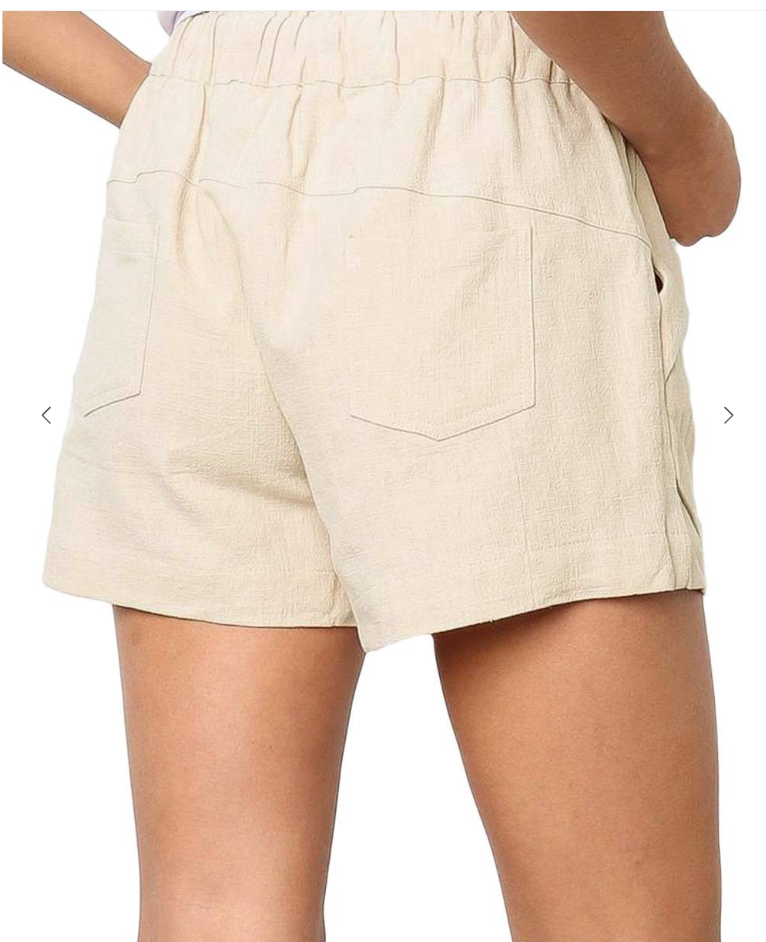 Cotton/Spandex textured Drawstring shorts with POCKETS!