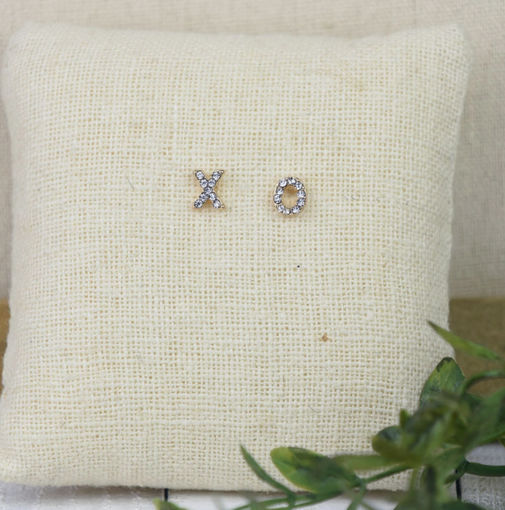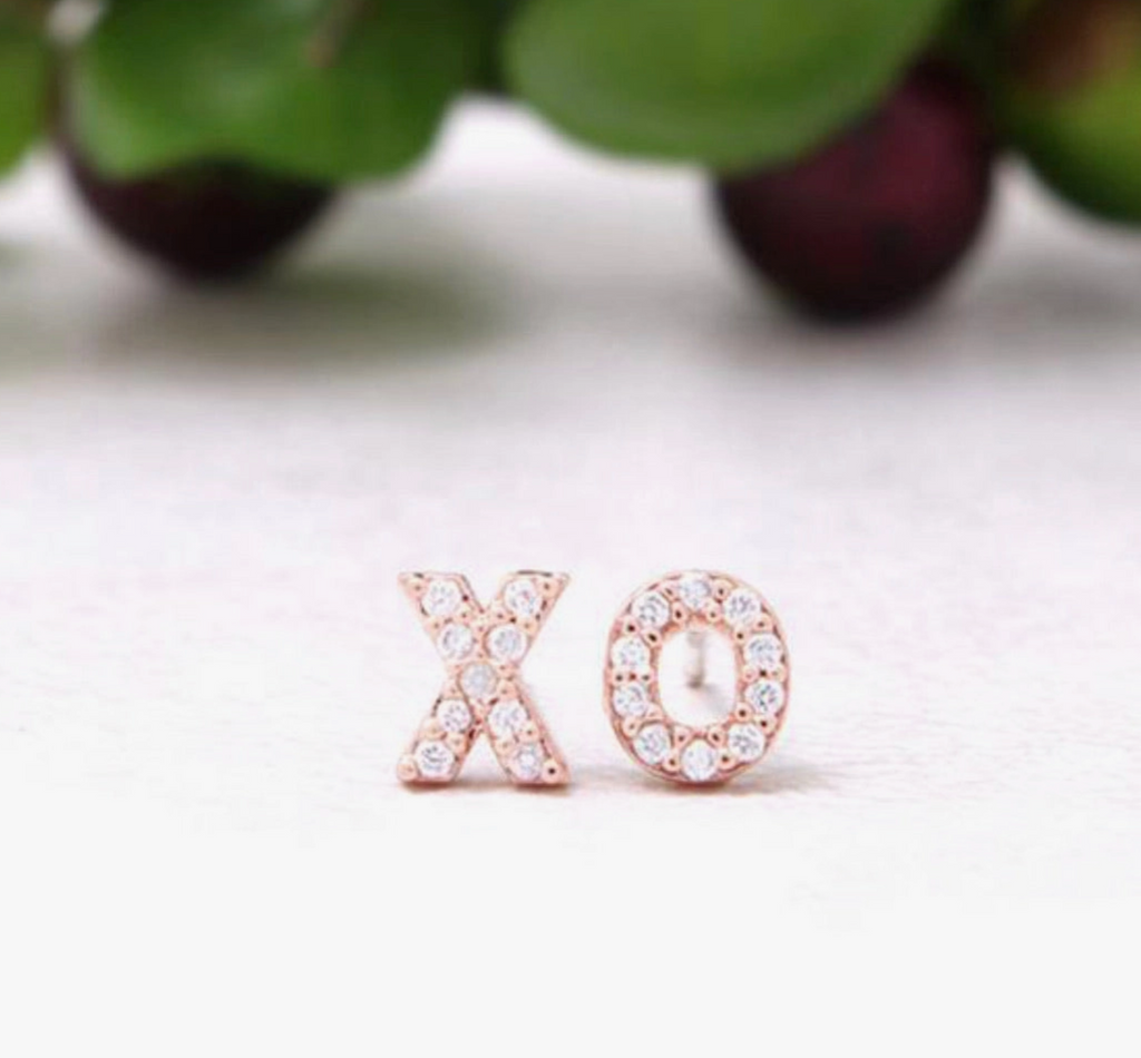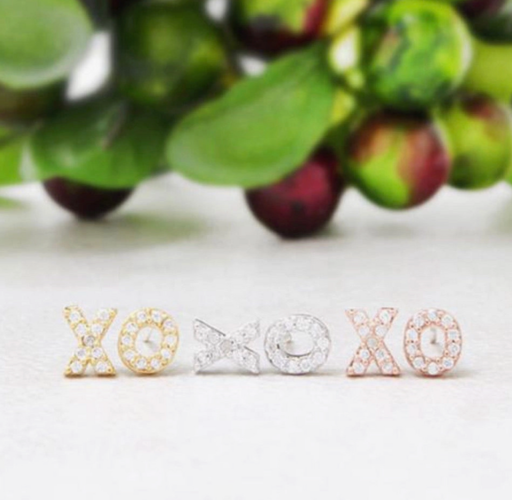 XO : Pave encrusted stud earrings. , gold Suitable for sensitive ears.