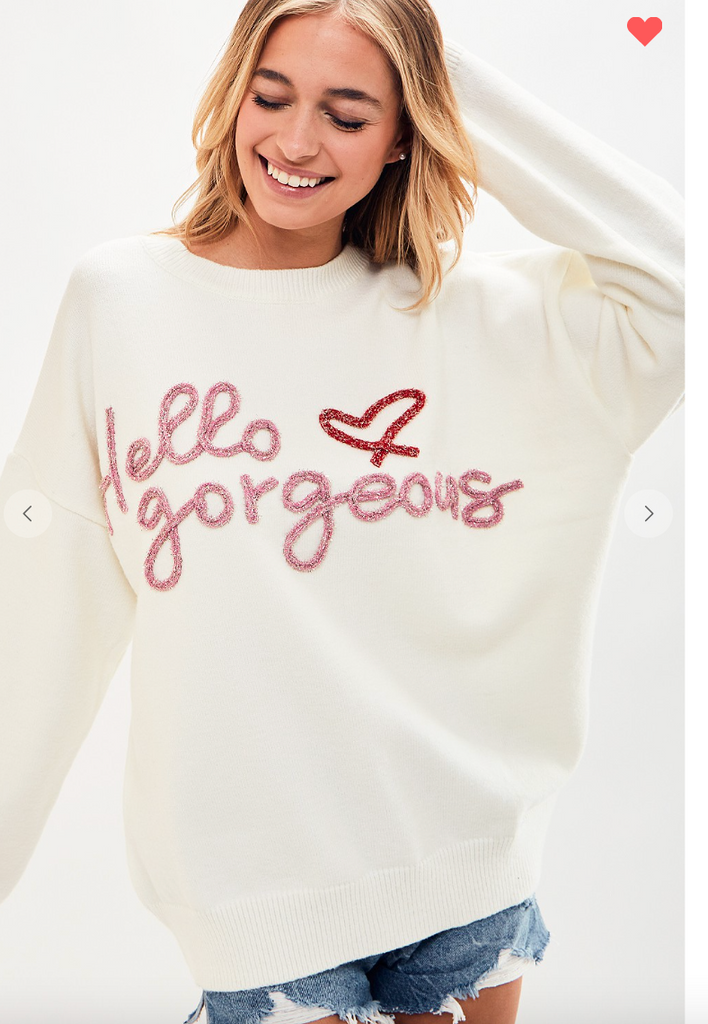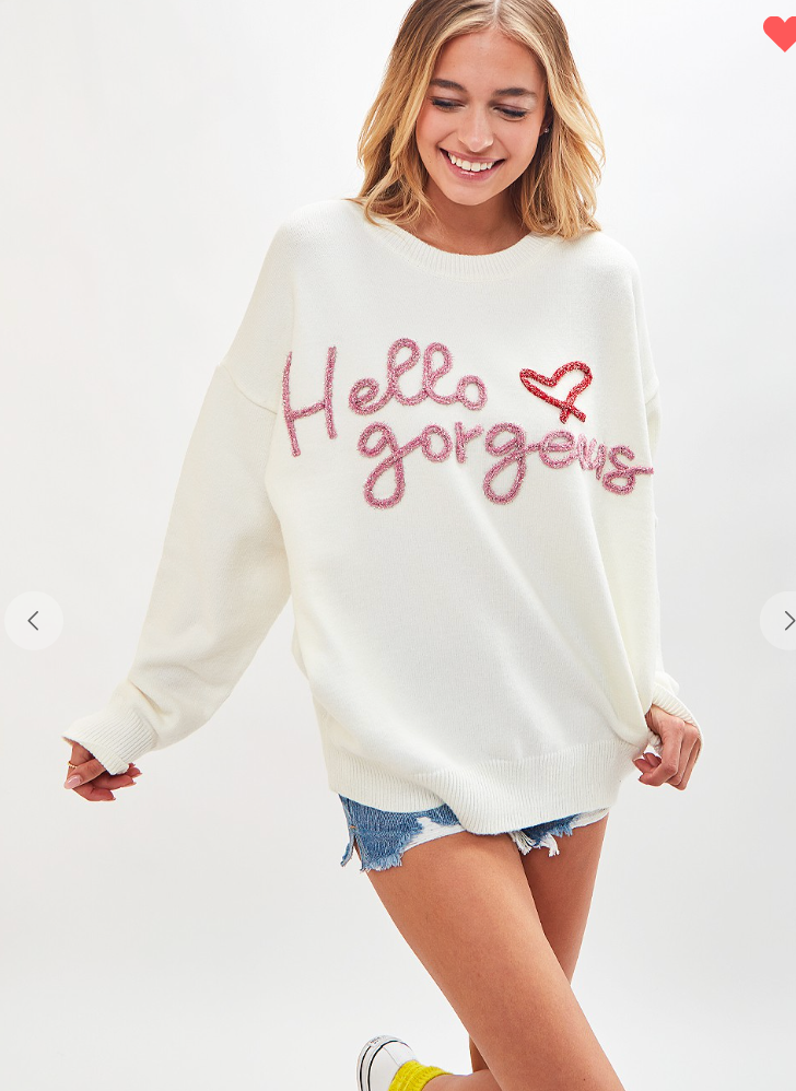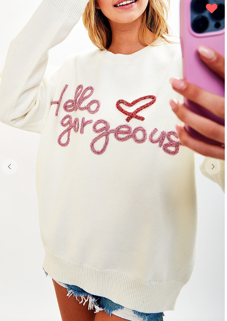 Love the Multi color shiny metallic letter applique on this knitted sweater top ! Definitely
