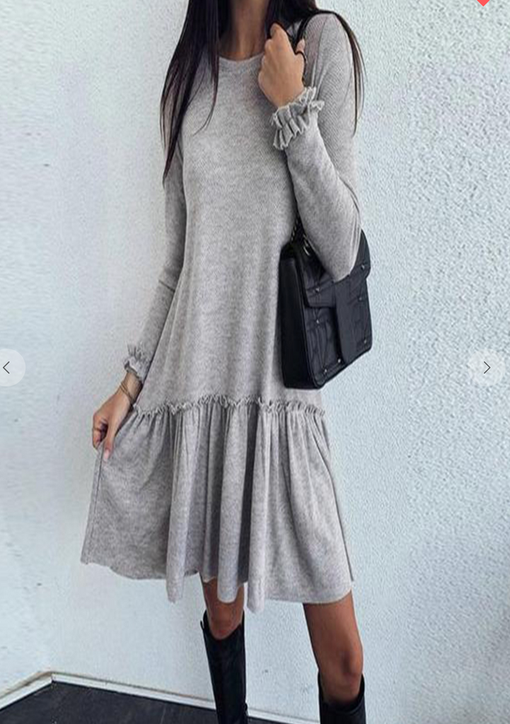 This Dress is all that and more! Poly/Spandex, comfy and cute! Love the detail around the sleeve and the drop waist which is so flattering! Wear with sneakers, boots, or booties or even sandals!