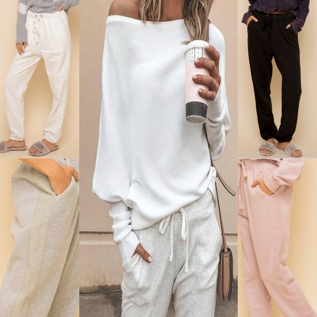 BUT... it all begins with a GREAT sweatpant and we found it! This one is SO classy and chic and pair with anything. It has a darling TONAL stripe down the side so it looks soo expensive! And the Fit is FAB. This is from a great vendor! Literally you can dress up or down! These are fleece lined, drawstring and side pockets!