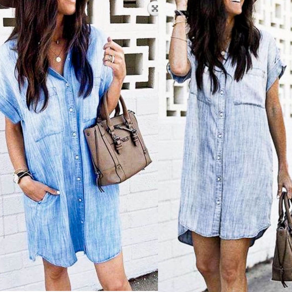 Introducing our newest Denim Tencel, a super flattering shirt dress that can be worn in any and every season!  Wear now with our Cute Sandals and pair in the fall with a hoodie and cardigans! We LOVE the side pockets and front button down! One of my favorite bodies in a dress!! Cotton/Tencel