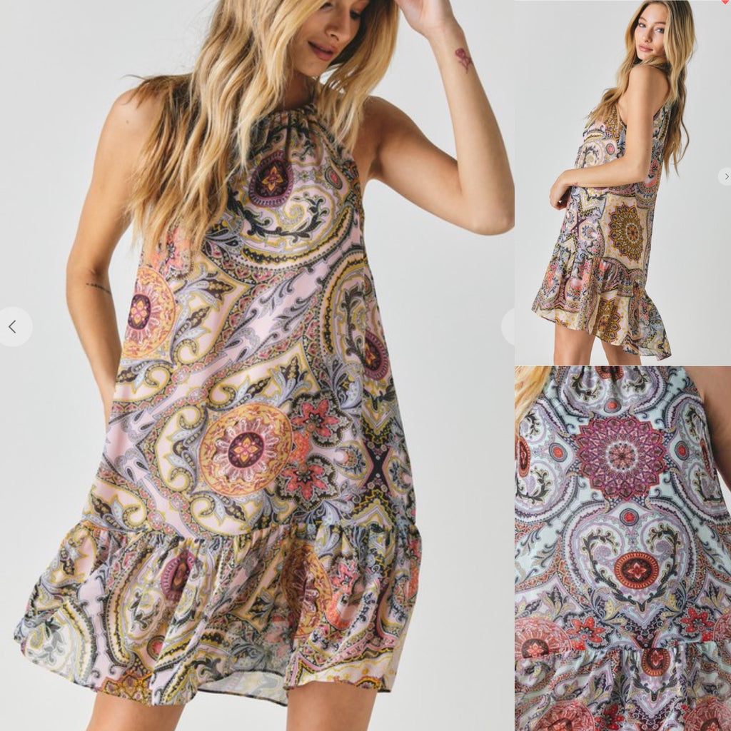 We of course love love this paisley and this style is so flattering! I love a great halter, cute ruffle bottom and longer in the back! The colors on this are so pretty for Fall and the style will take you there! Wear it as is now and with a cardigan in the Fall!