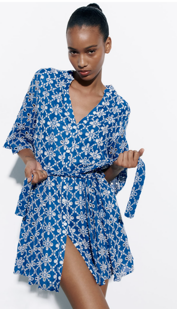 Darling! This embroidered embroidered dress will take you from Santorini to Santa Barbara.