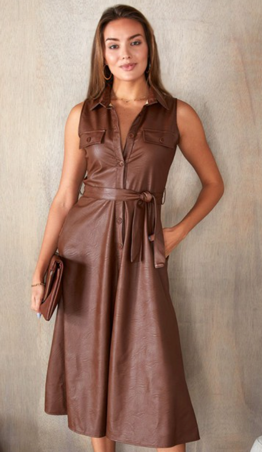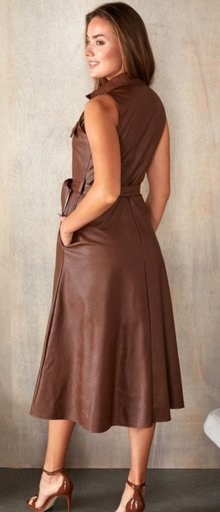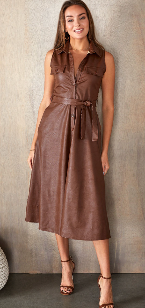 Our New Vegan Leather Sleeveless Button Down with a Tie Belt is stunning! From our Italian
