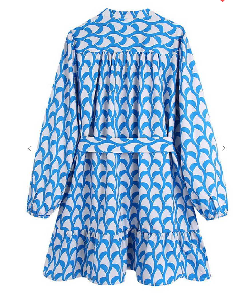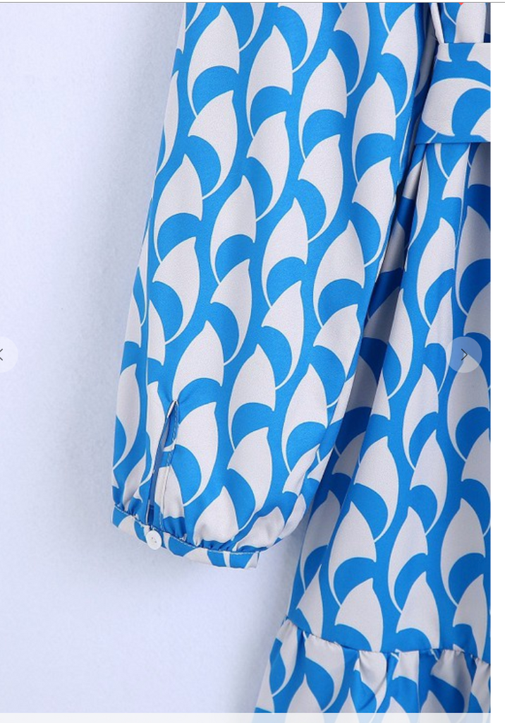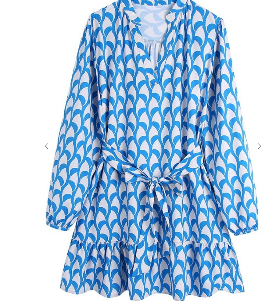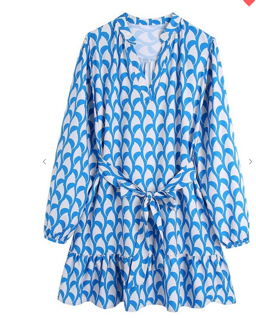 The CUTE V Neck, darling blue and white print, slight ruffle and matching belt make it a dress you can wear anytime or anywhere.