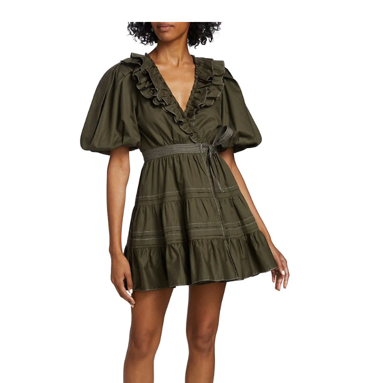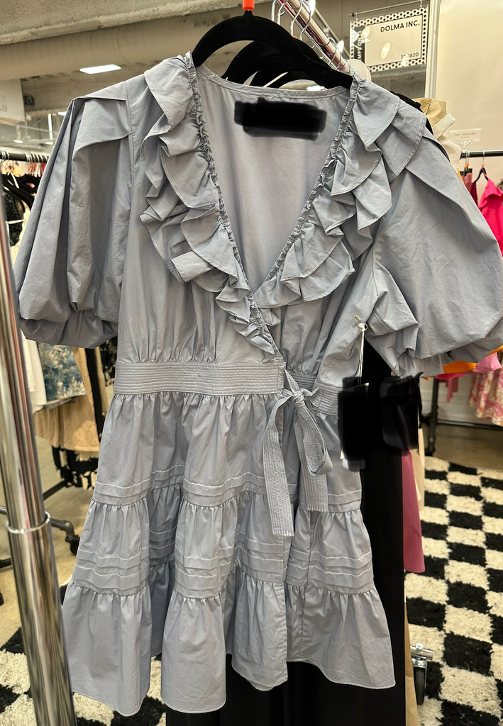Darling ruffle V Neck, cute tie and tiered soft skirt, gorgeous fabric and fit! This will be a staple in your closet!