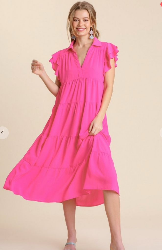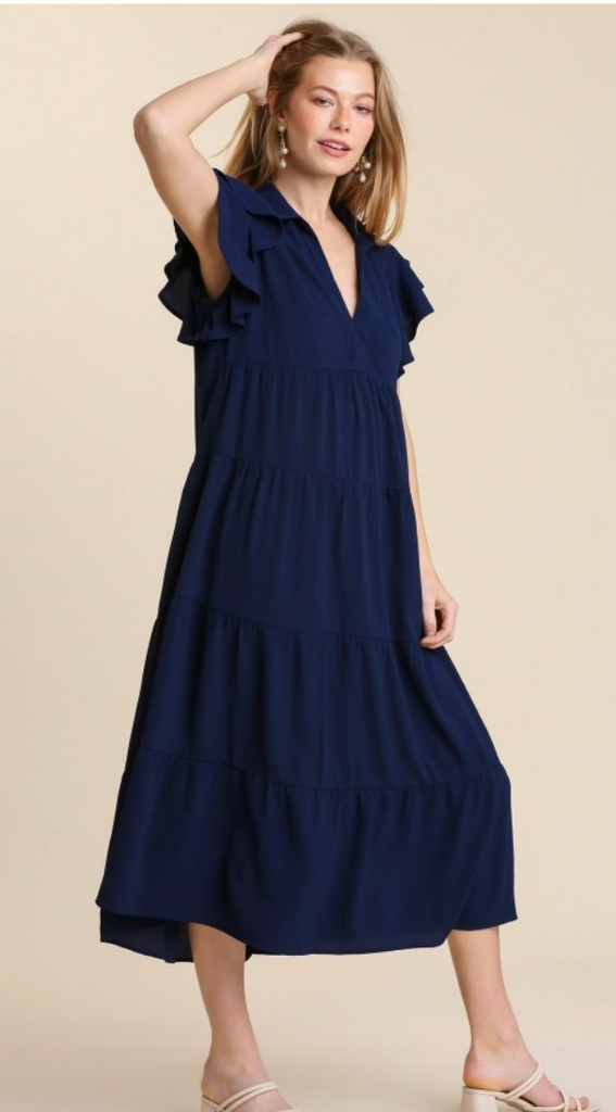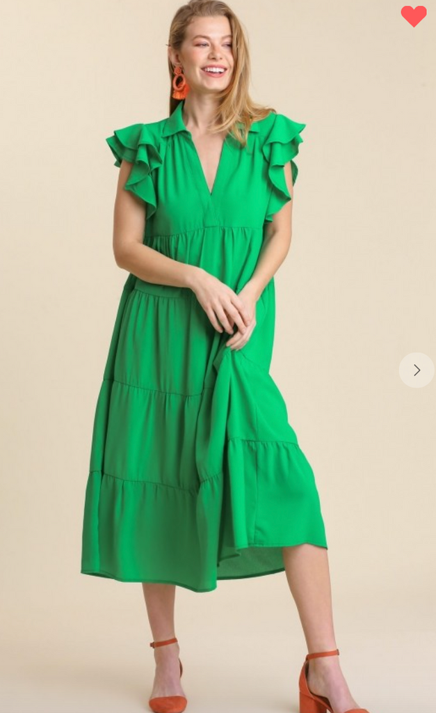 The V Neck, cute sleeve and great midi length makes it so easy to1 wear anywhere at any time!