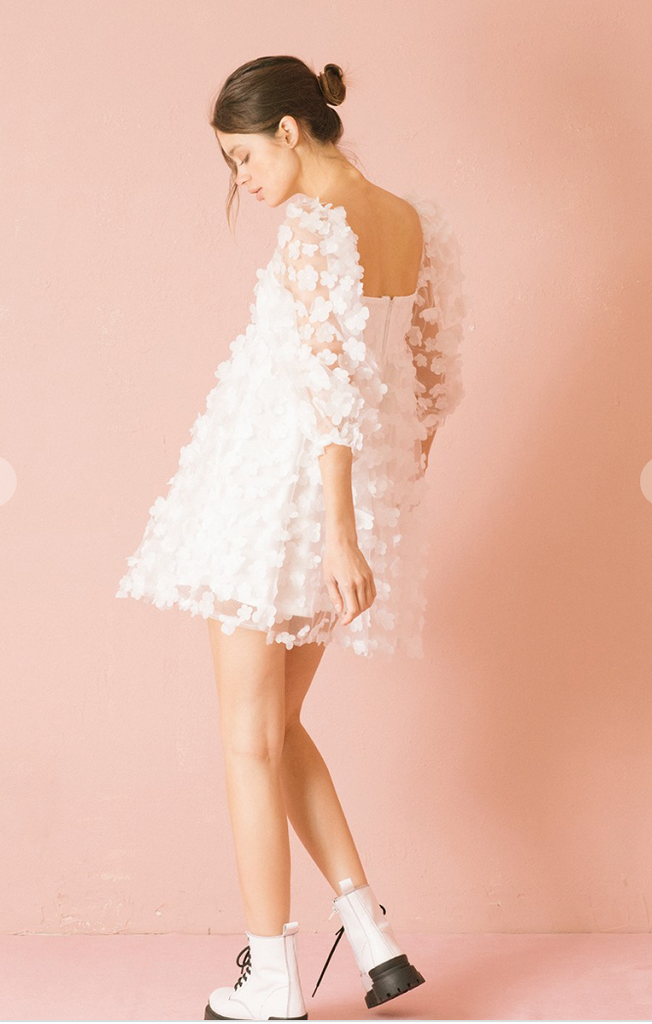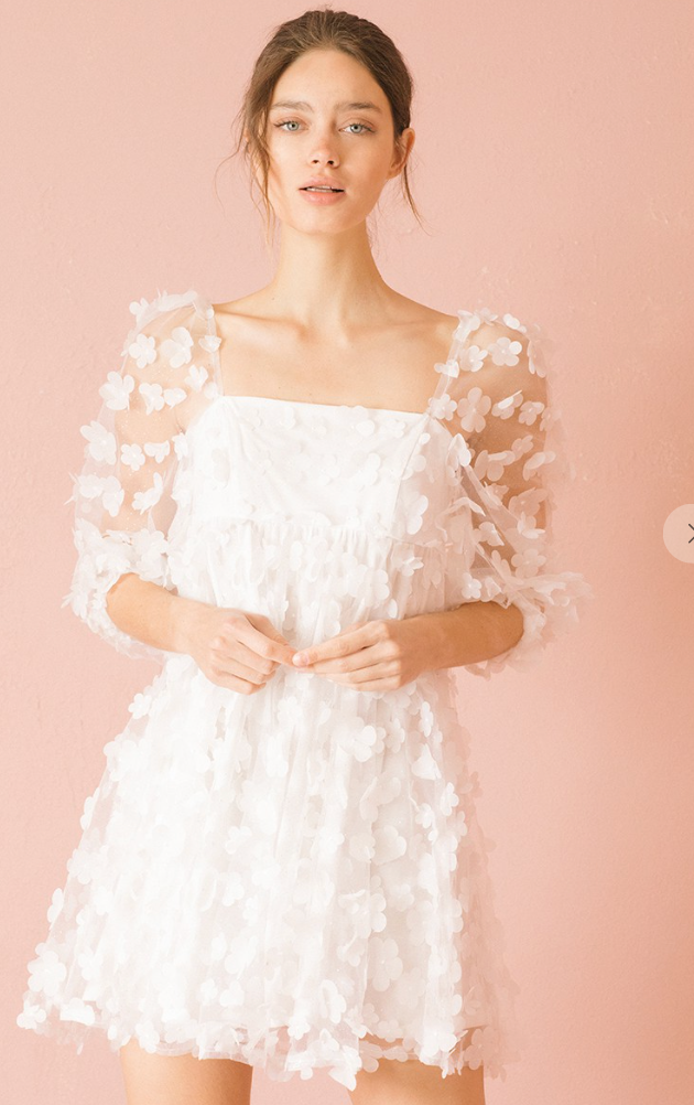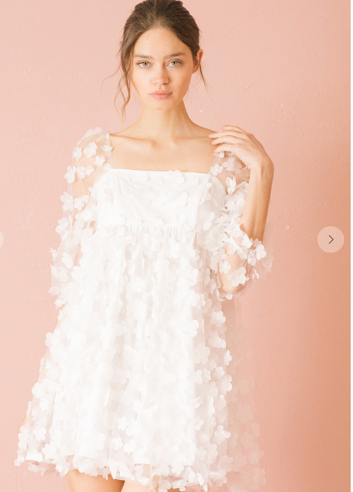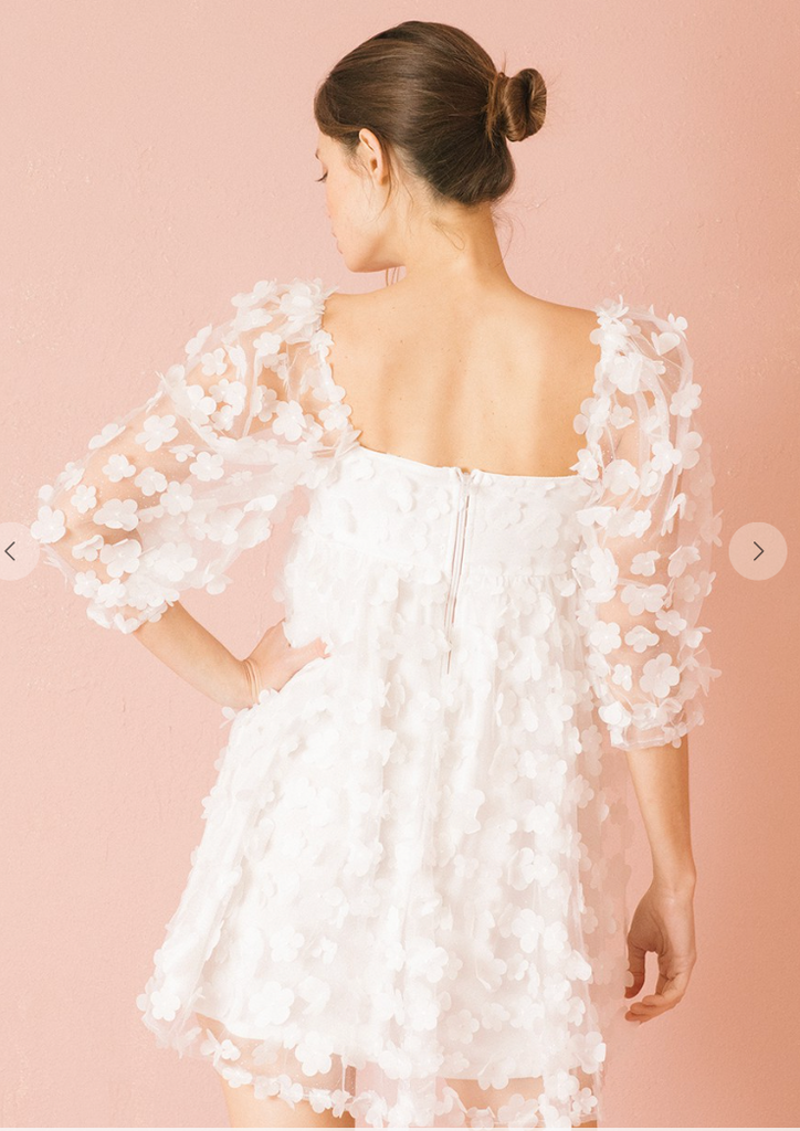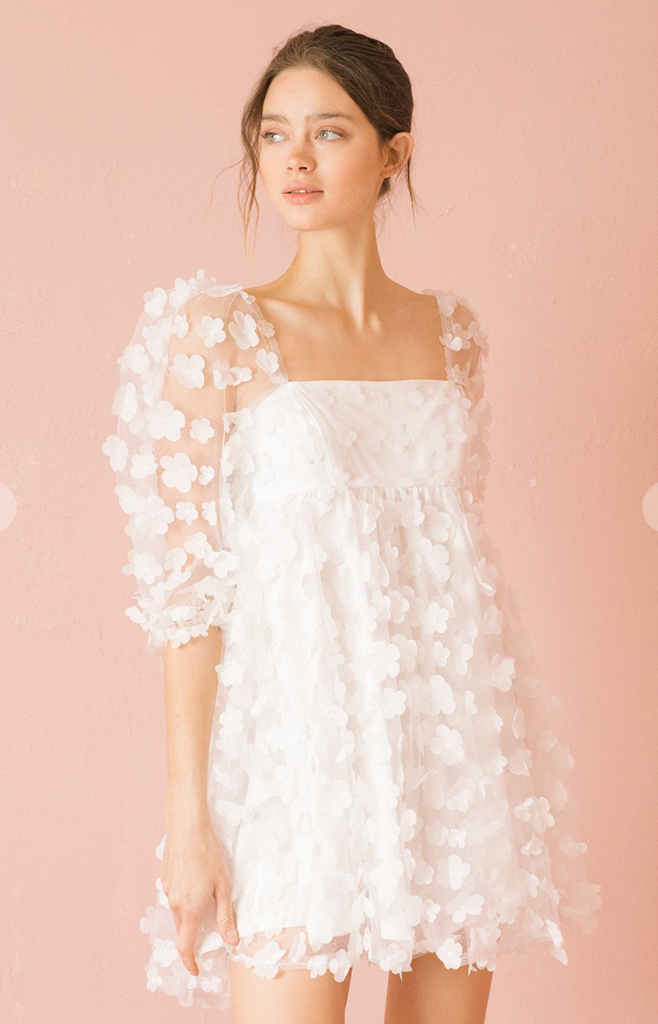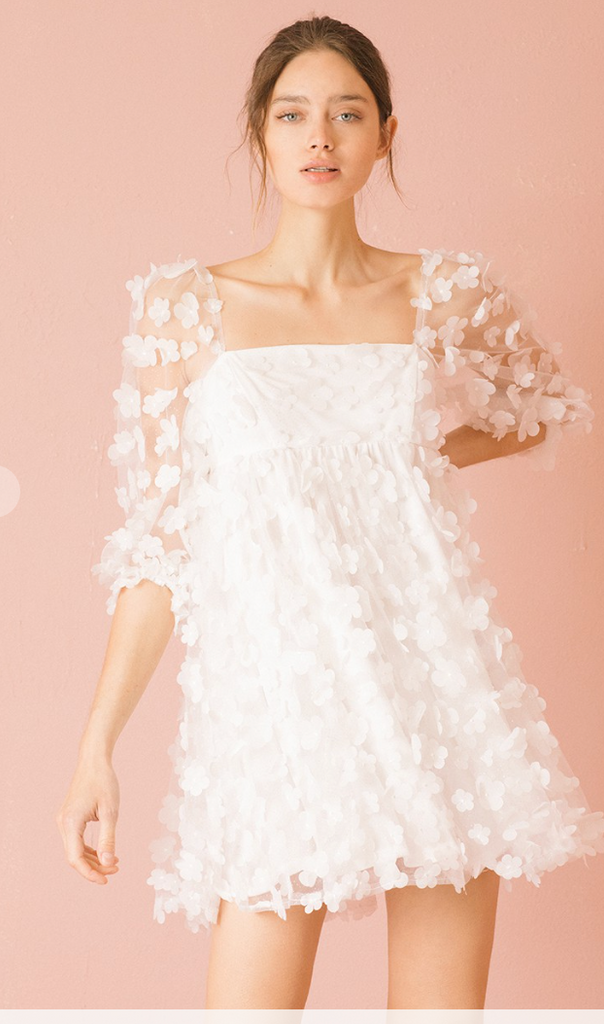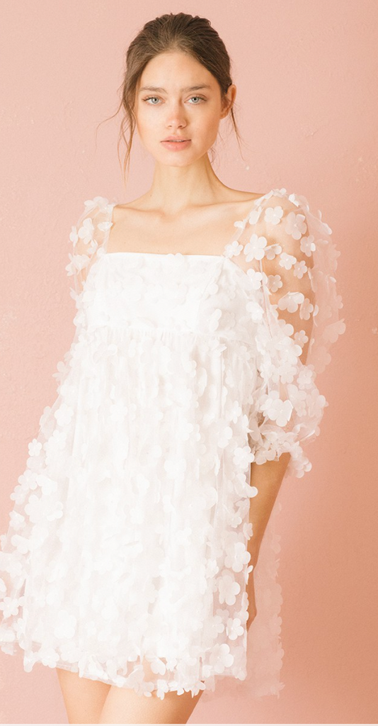White daisies applique baby doll mini dress.