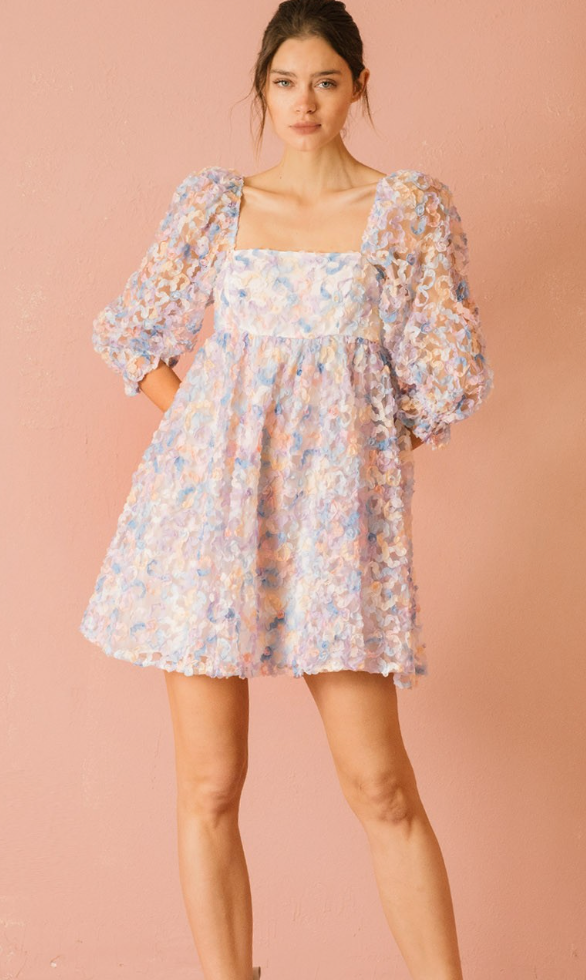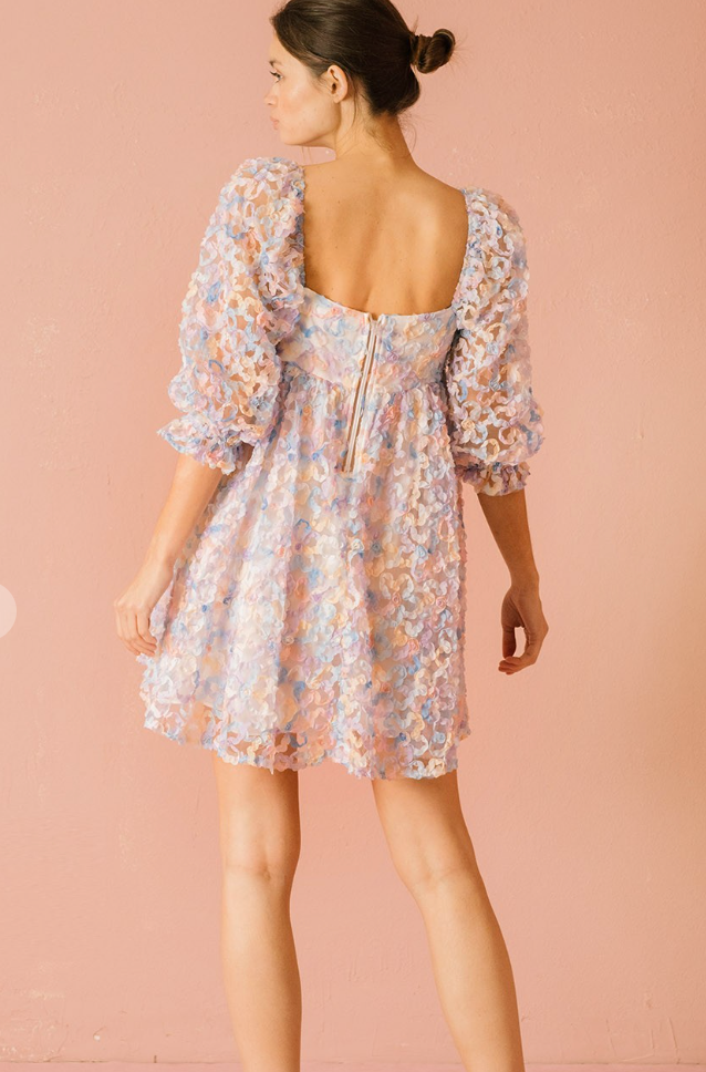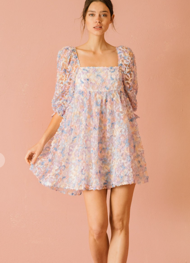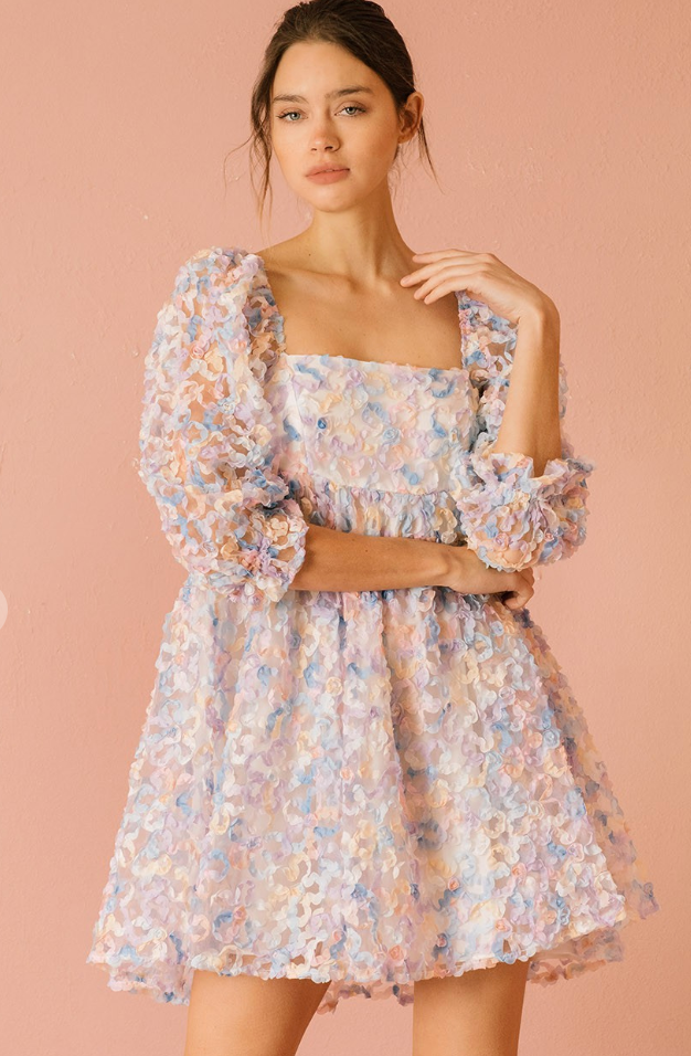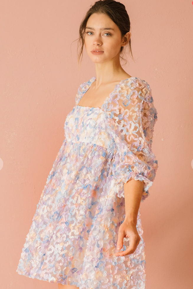 Embellished multi-color pastel daisies baby doll dress featuring a tulle body ( so in right now!)