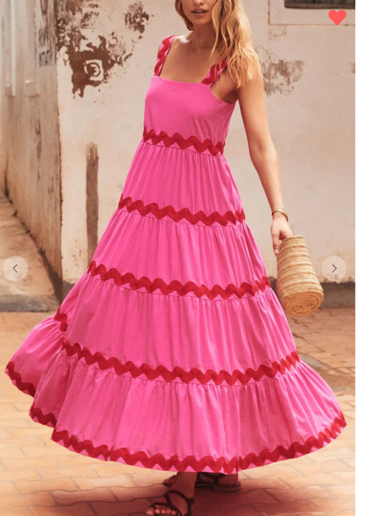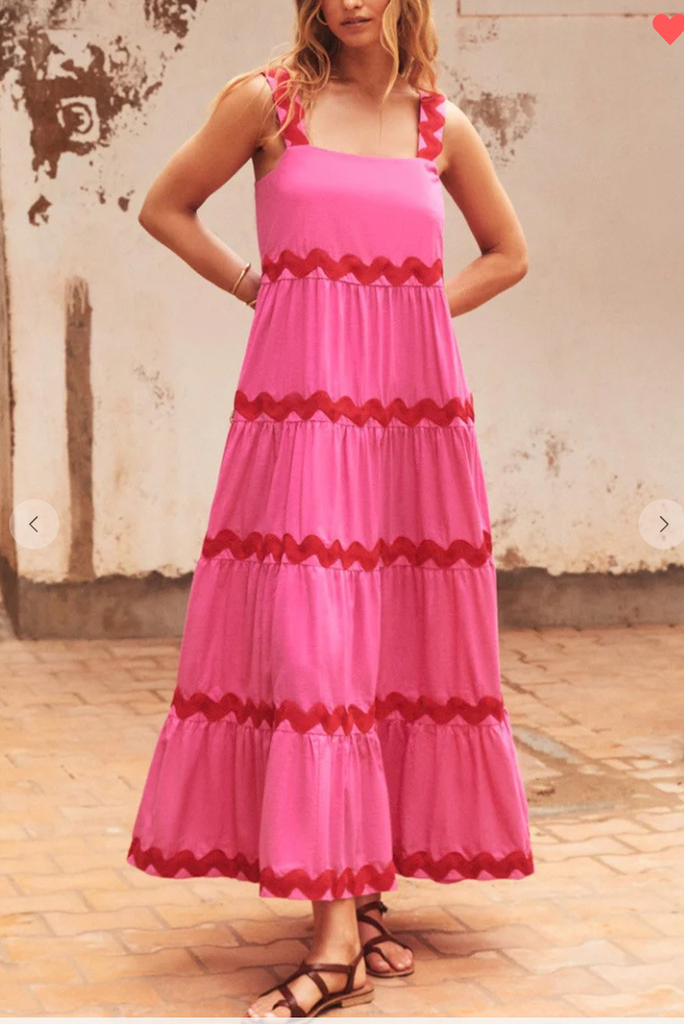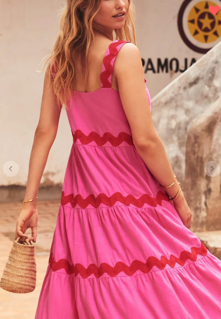 We love the look on this darling dress! Cute straps trimmed in a ric rack pattern