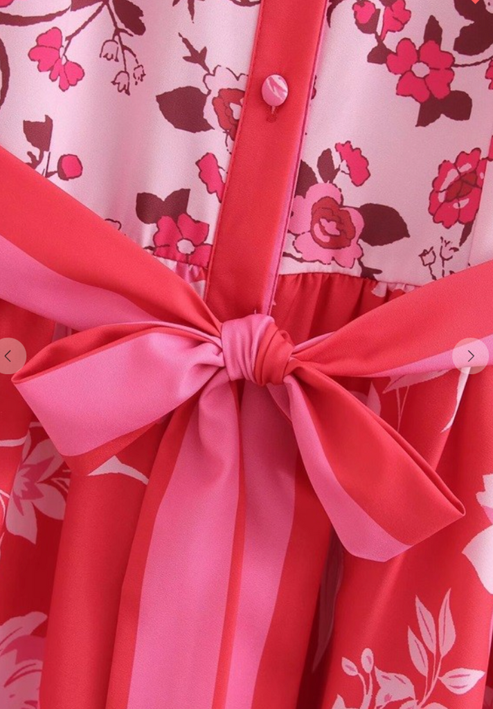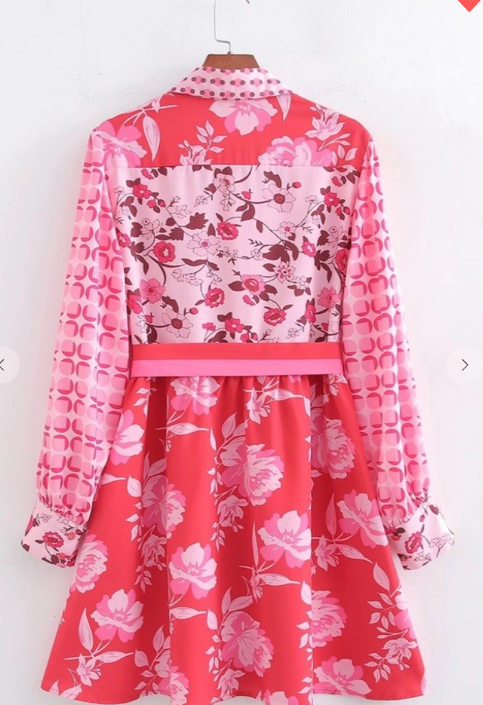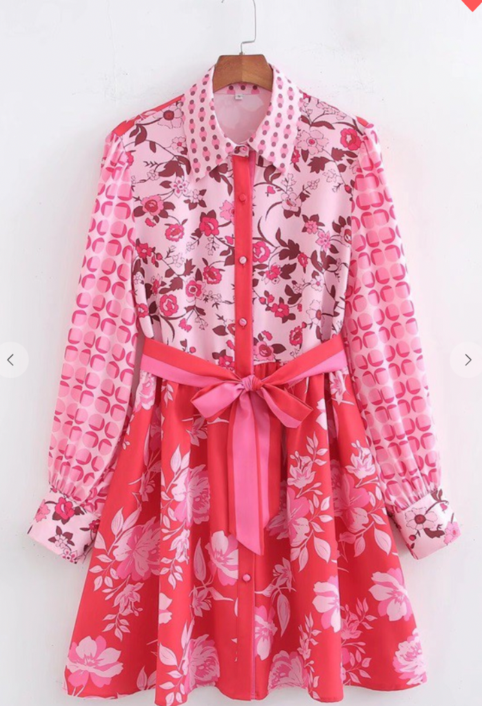 NEW! Our Beautiful Multi print long sleeve button down shirt dress with matching sash is the perfect dress to transition into Spring!