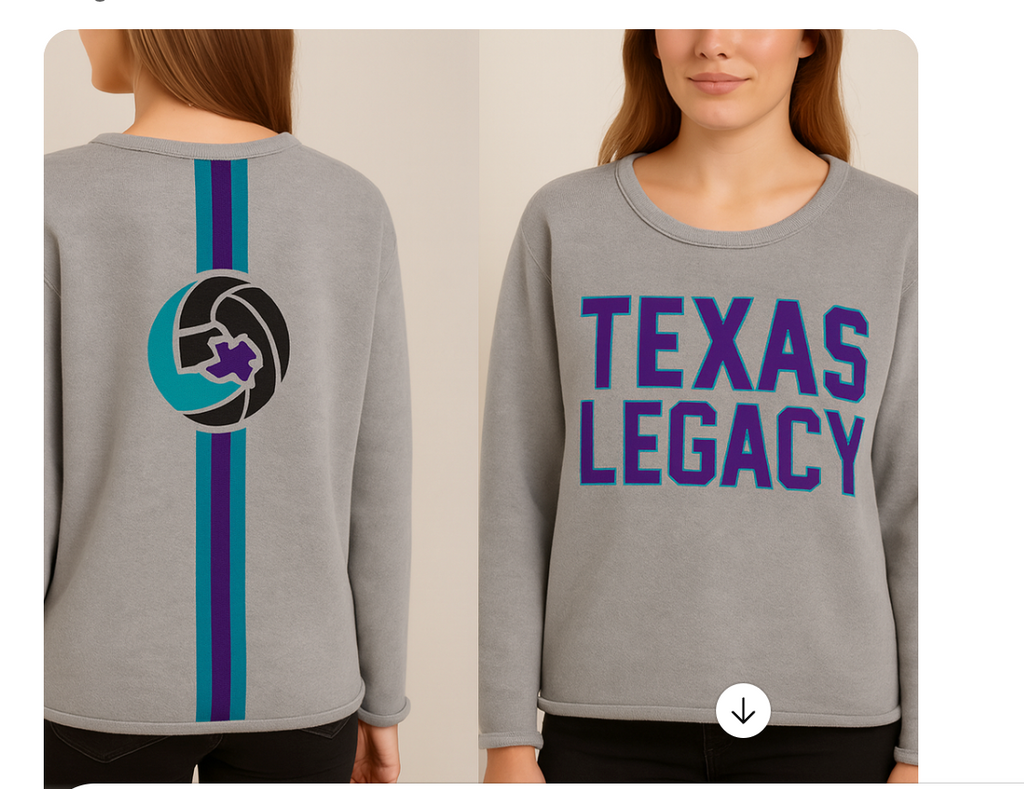 This new TEXAS LEGACY VOLLEYBALL Sweater is so amazing!!! It is being manufactured exclusively for your TEAM!