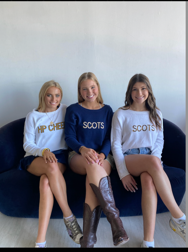This is just our prototype but we we attached a similar sample from a Highland Park and Southlake sweater that just went through production that shows correct Font and SCHOOL placement!