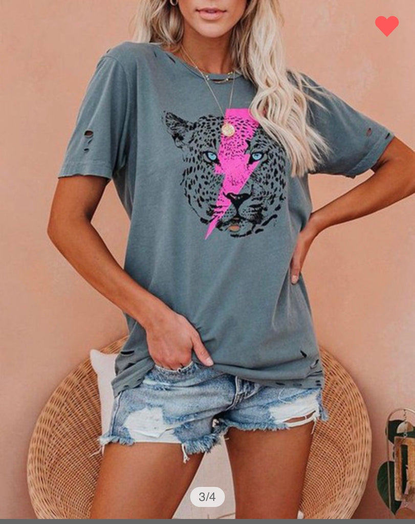 How fun is this Tiger Graphic tee with the Hot Pink Lightning Bolt! Vintage Tees are all the RAGE right now and this one goes with everything!