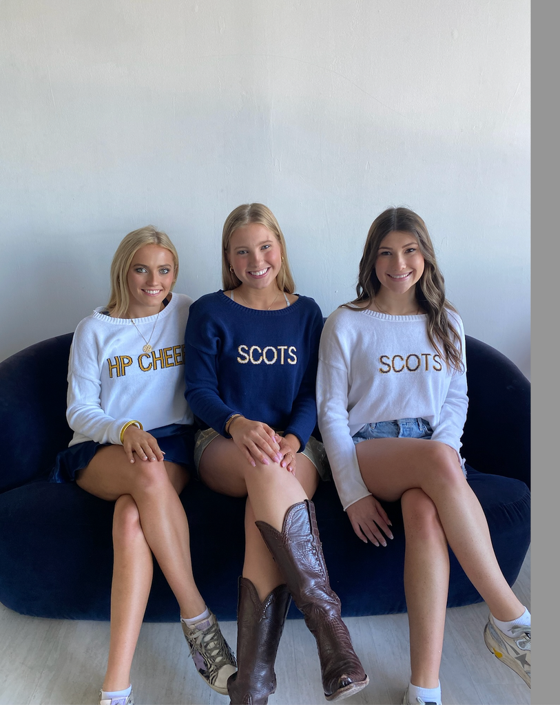 This is just our prototype but we we attached a similar sample from a Highland Park and Southlake sweater that just went through production that shows correct Font and SCHOOL placement!