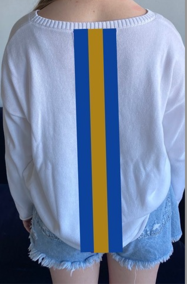 On the back we are adding a detail stripe of YOUR SCHOOL COLORS (BLUE/GOLD/BLUE )