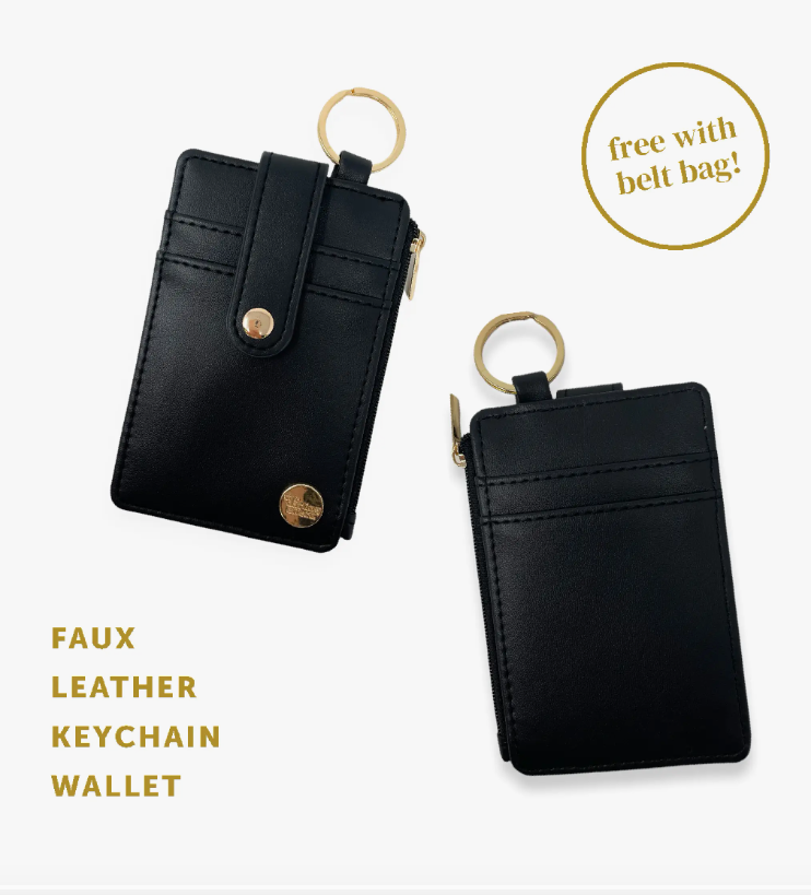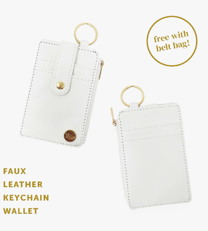 Each belt bag comes with a faux leather keychain wallet that allows for colorful, coordinated merchandising. The wallet dimensions are: 4.5in X 3in X .25in. The belt strap length (when fully extended) is 40in.