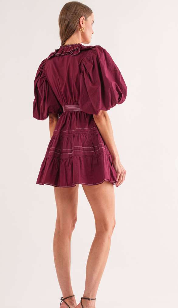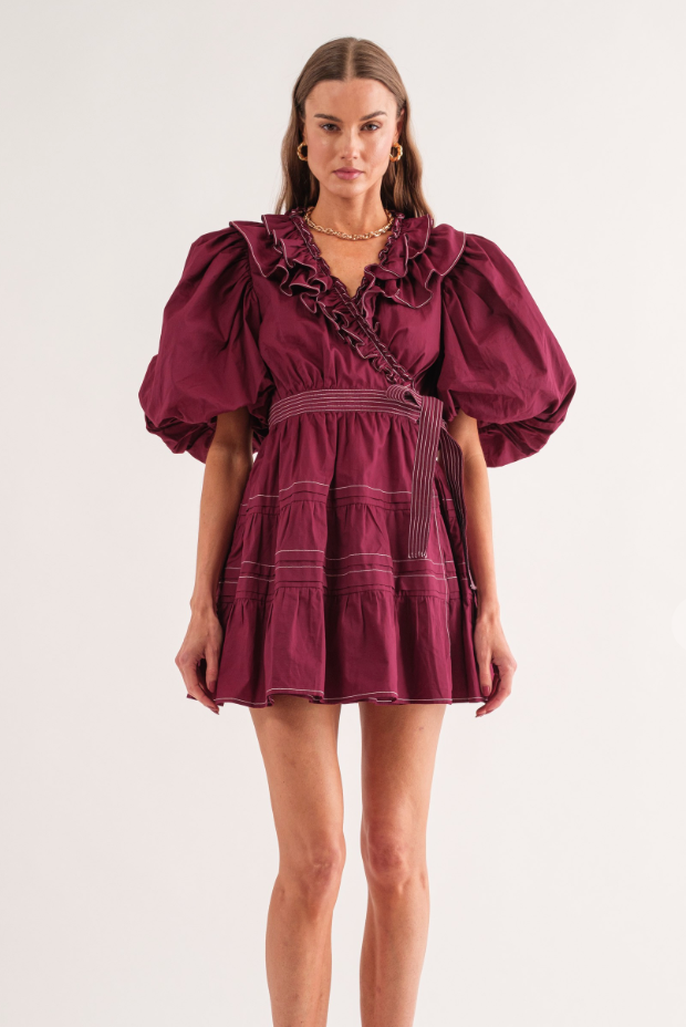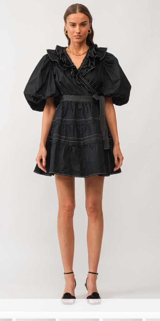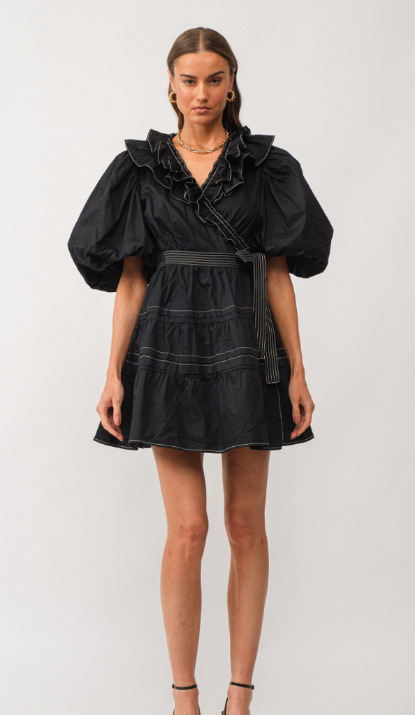 Our Gianna is finished with short puff-sleeves and elegant ruffle details.