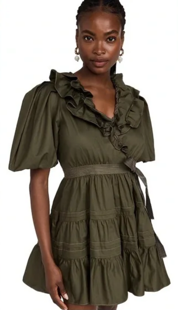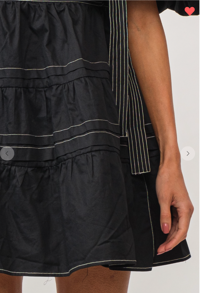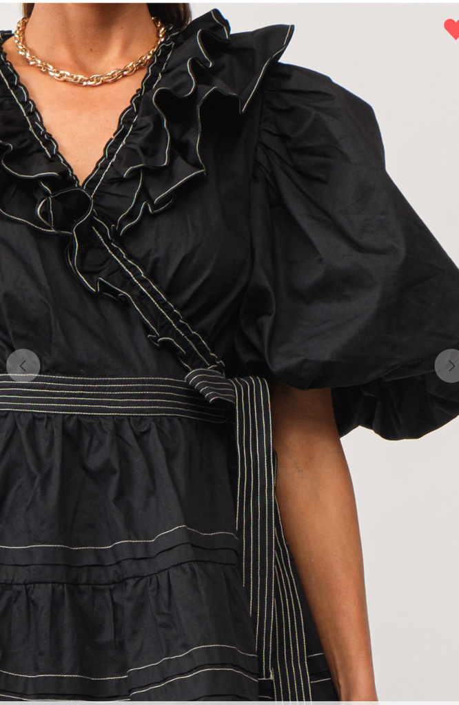 Darling ruffle V Neck, cute tie and tiered soft skirt, gorgeous fabric and fit! This will be a staple in your closet!