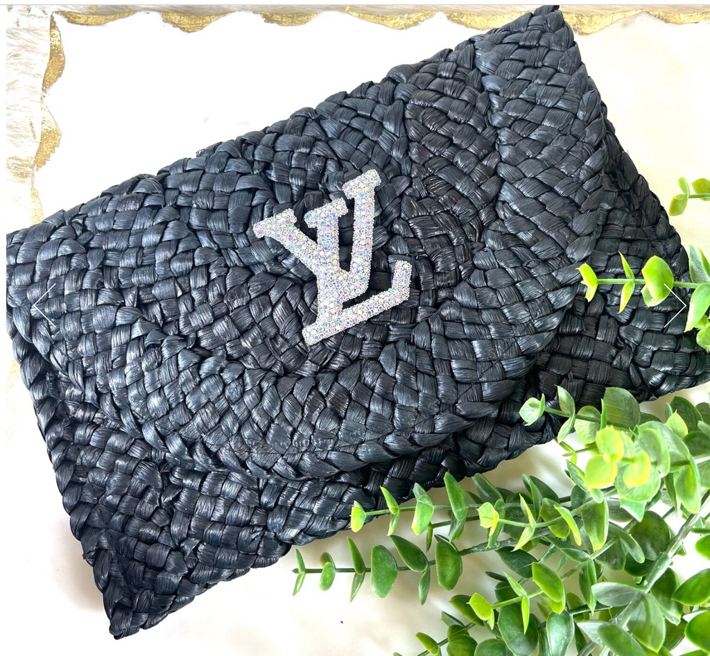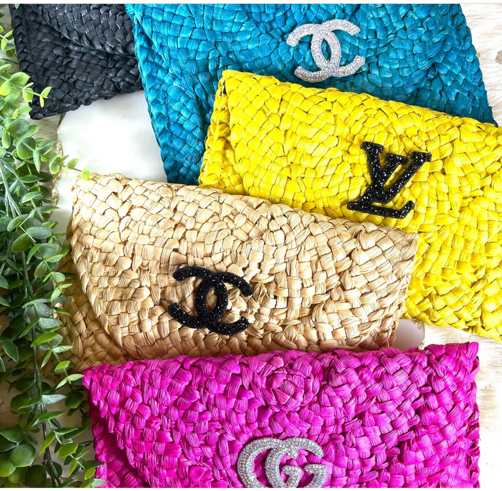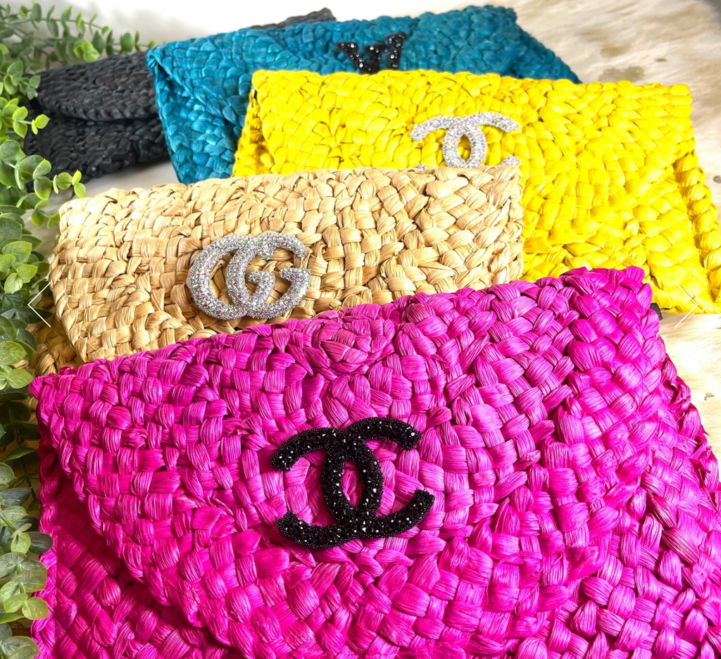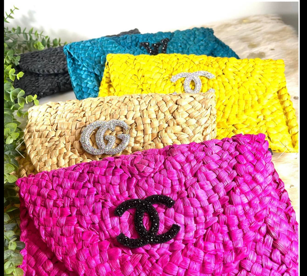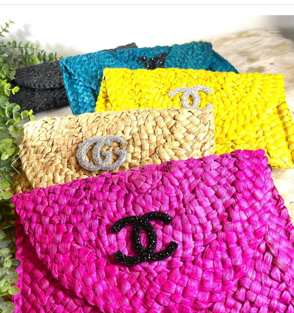 Choose the color of your Straw Clutch with your choice of bling!! These have a snap closure and lined inside.