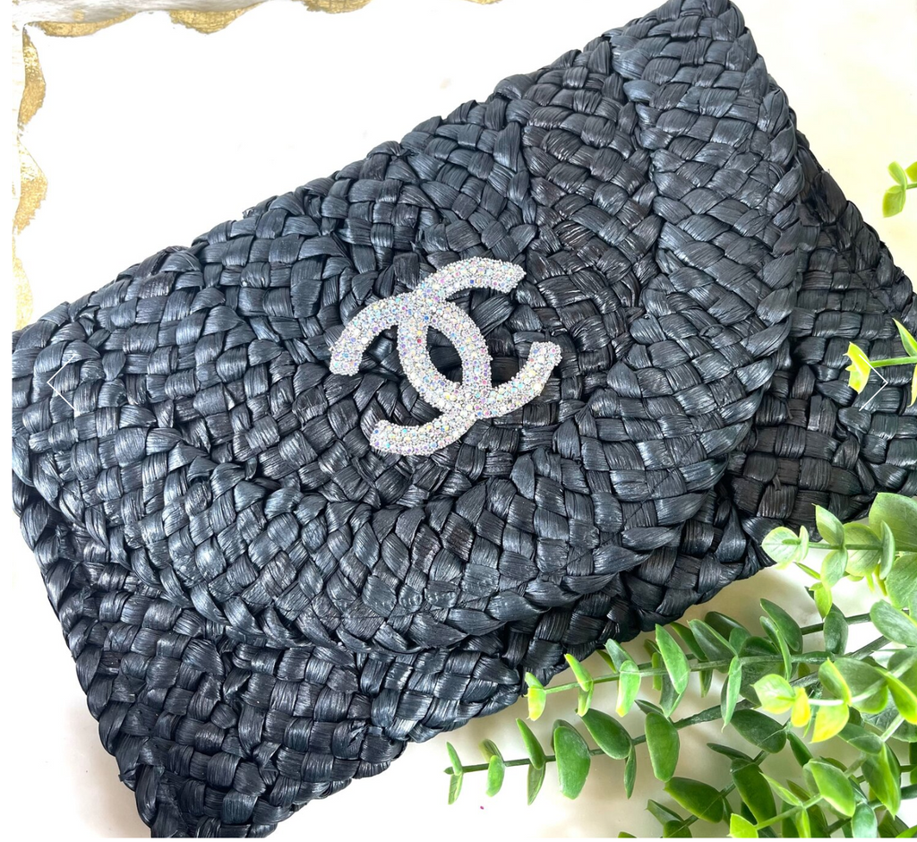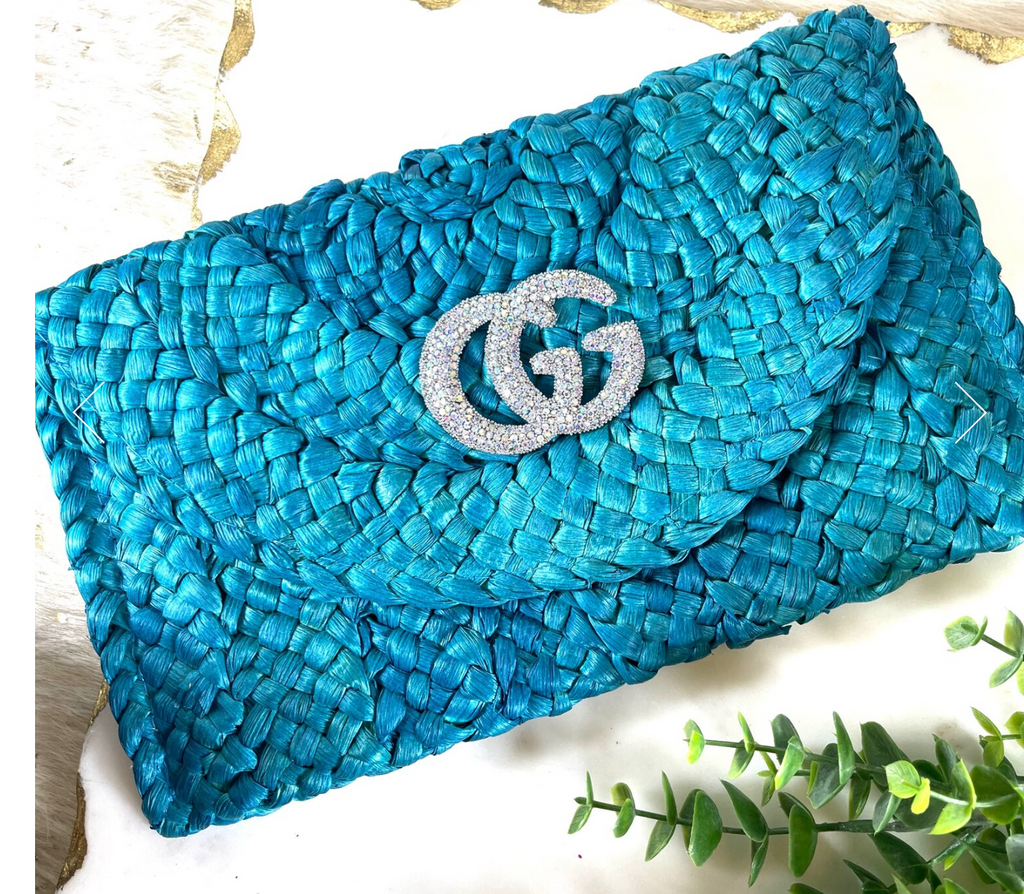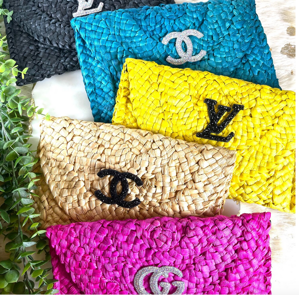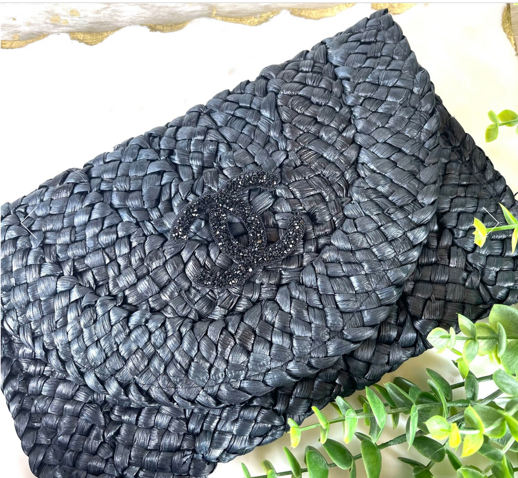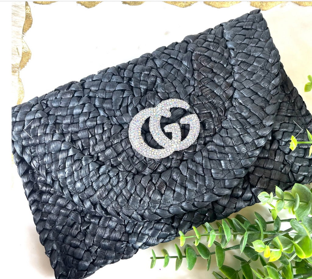Choose the color of your Straw Clutch with your choice of bling!! These have a snap closure and lined inside.