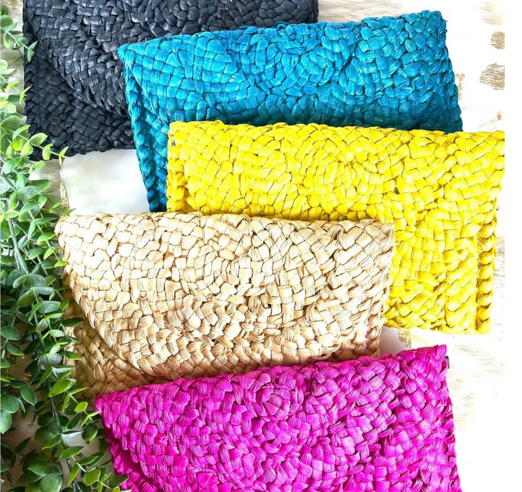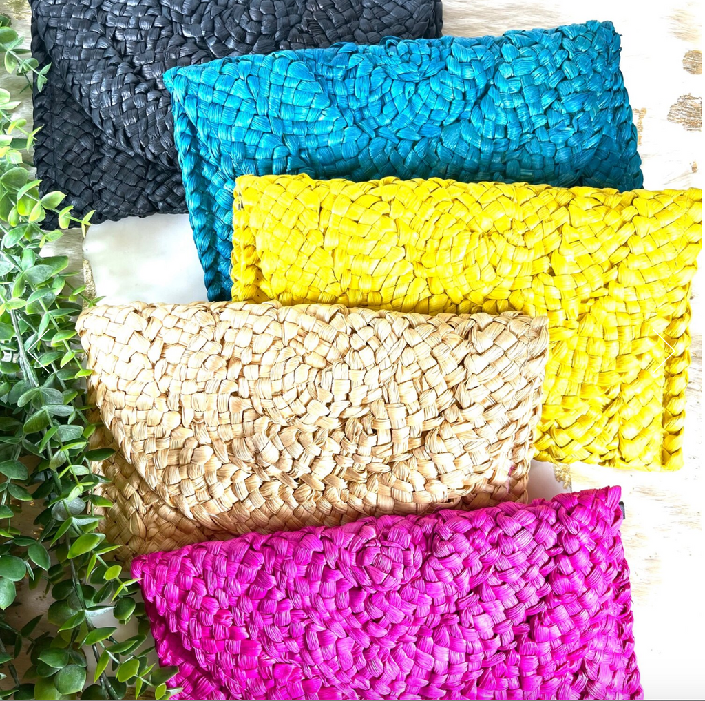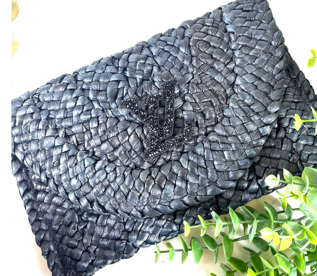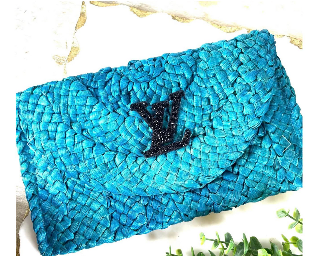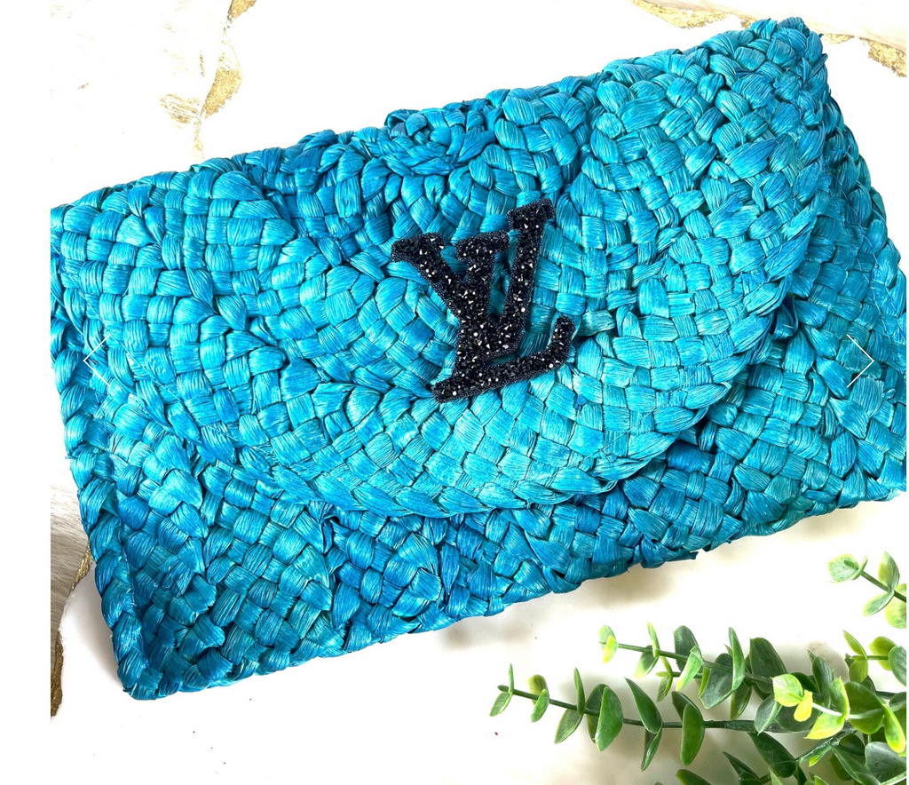 Choose the color of your Straw Clutch with your choice of bling!! These have a snap closure and lined inside.