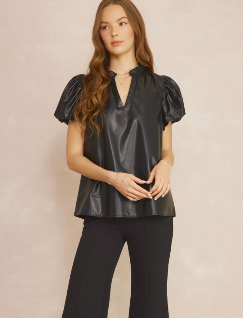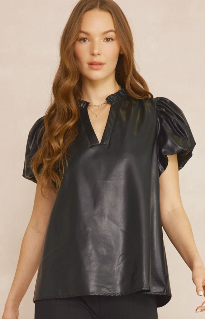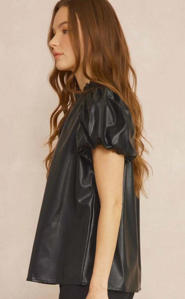 EARLY ACCESS: VEGAN LEATHER SHORT SLEEVE TOP