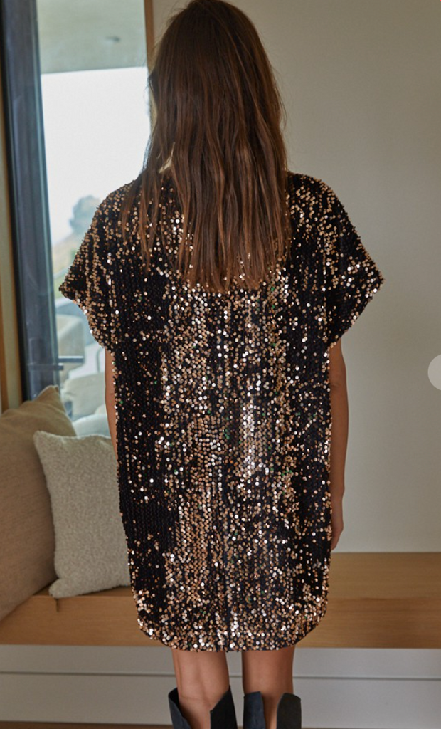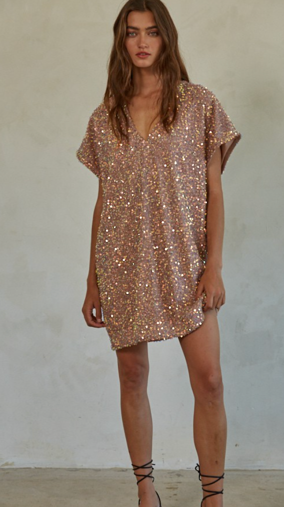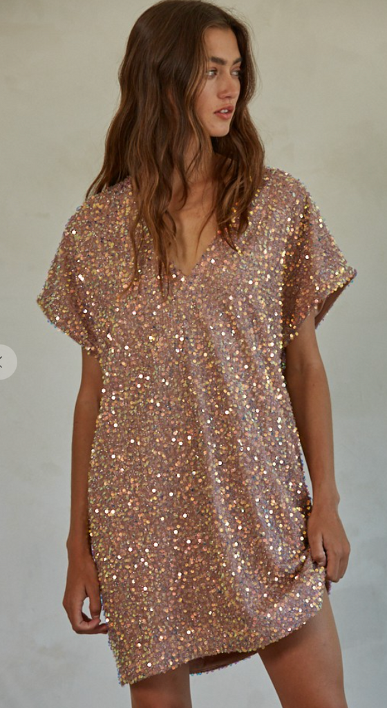 TThese Woven Polyester Sequin V-Neck Short Sleeve Mini Dress that are