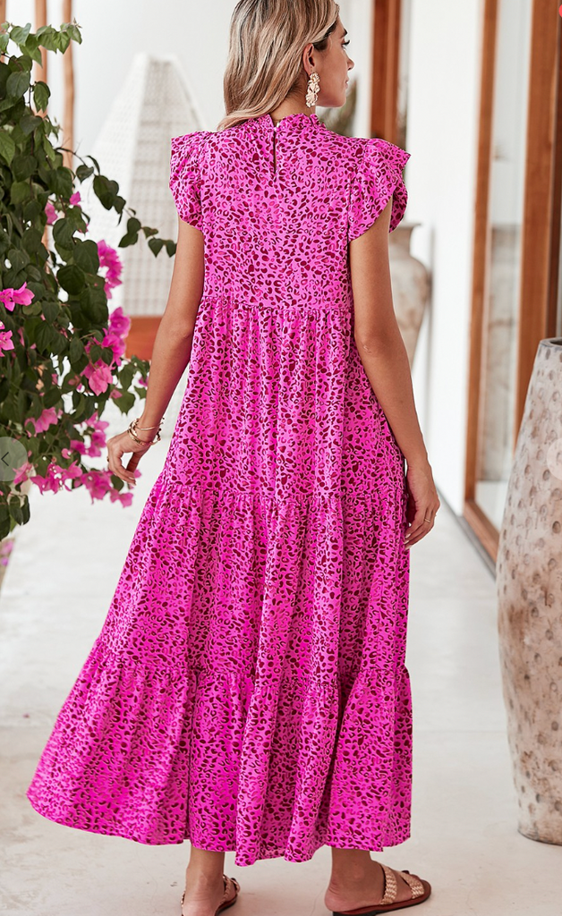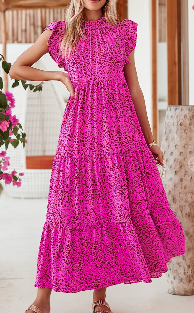 The dress is designed with ruffle sleeves, and cute tiers for easy