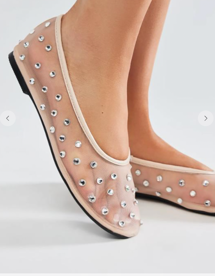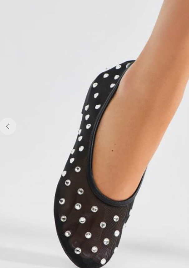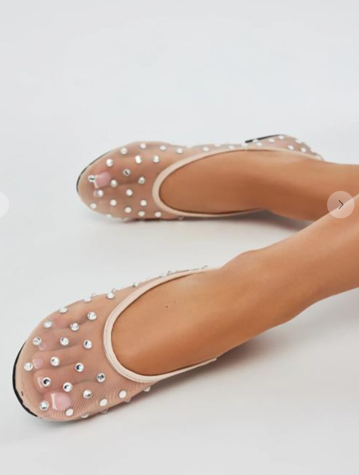 A sleek, rounded-toe flat that reimagines the classic ballerina with a tonally banded topline and darling placed crystals!