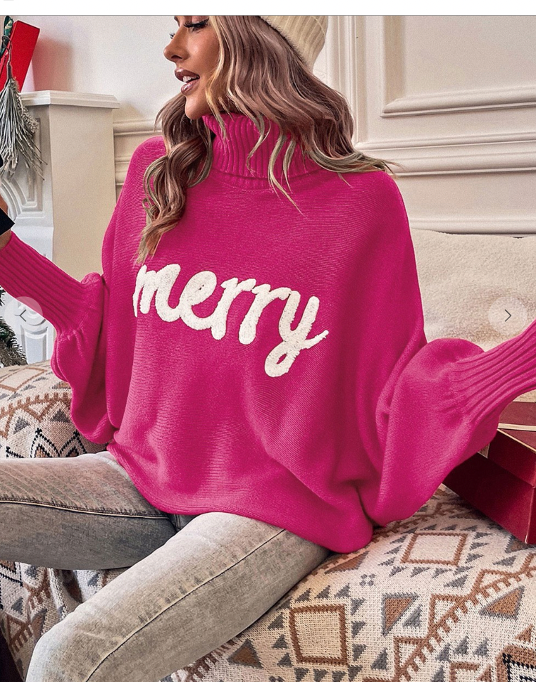 This sweater features a letter embroidered merry graphic! Relaxed silhouette and super fun colors!