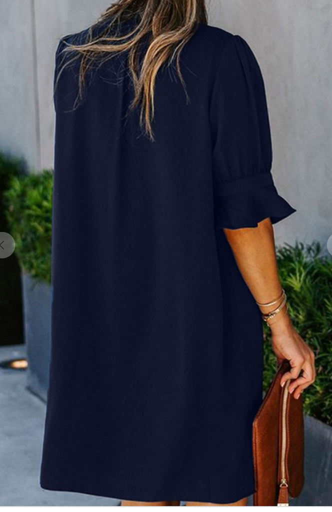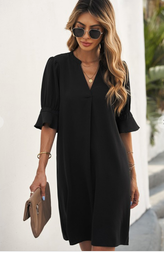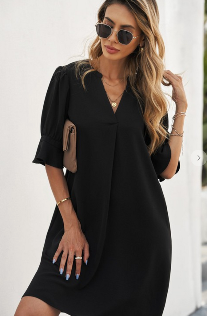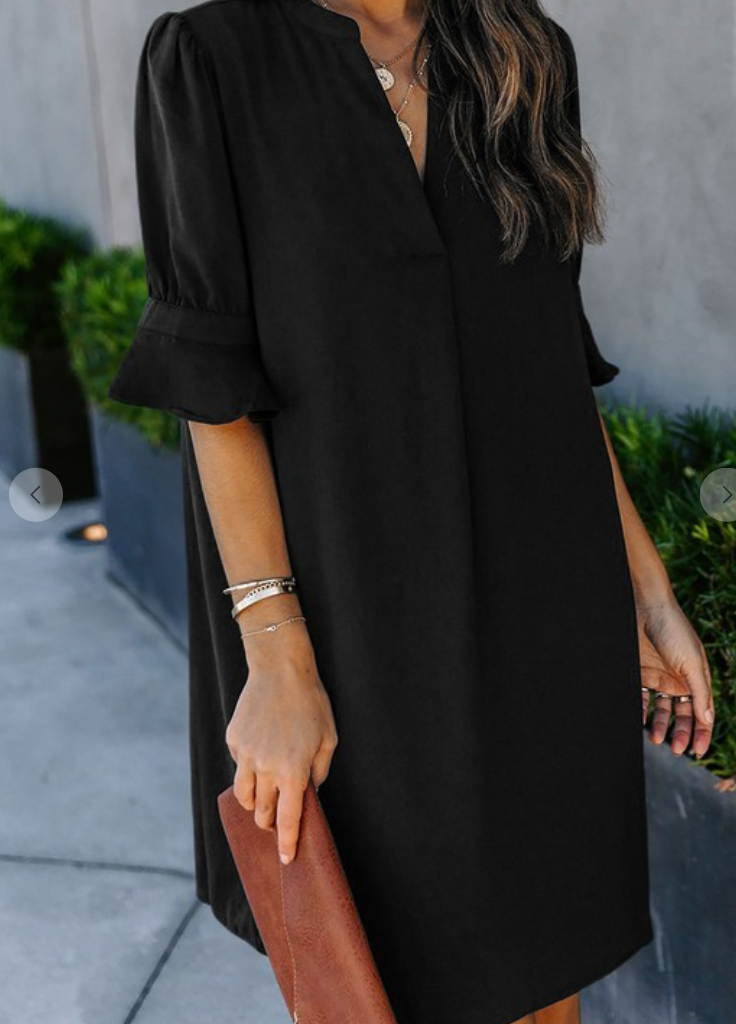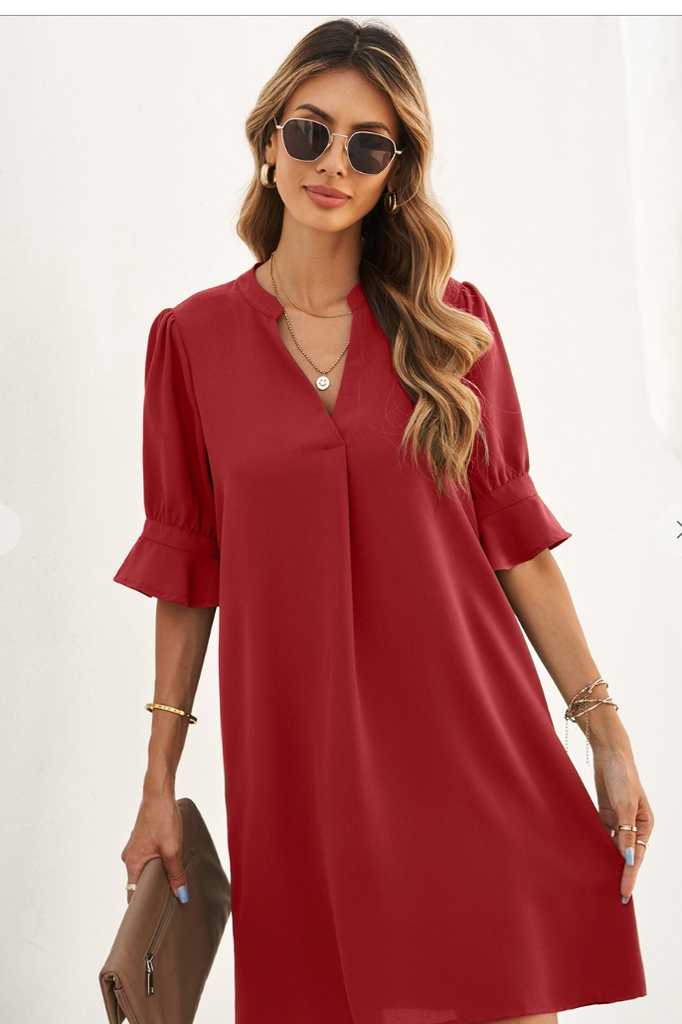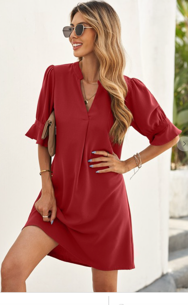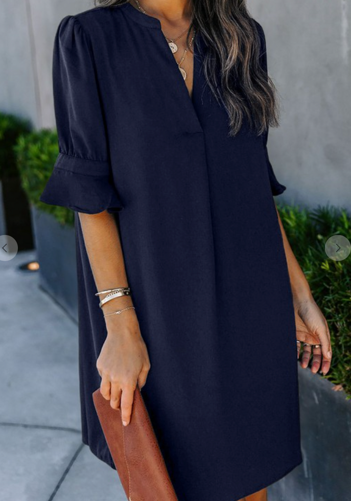 This dress with ruffled sleeves design is so flattering with the Great V Neck and shirt