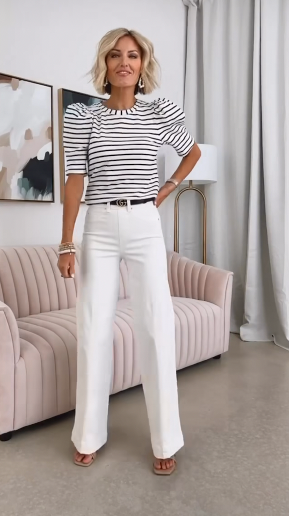Darling lightweight, cute puff sleeves, crew neck and I love how the neck and sleeves are