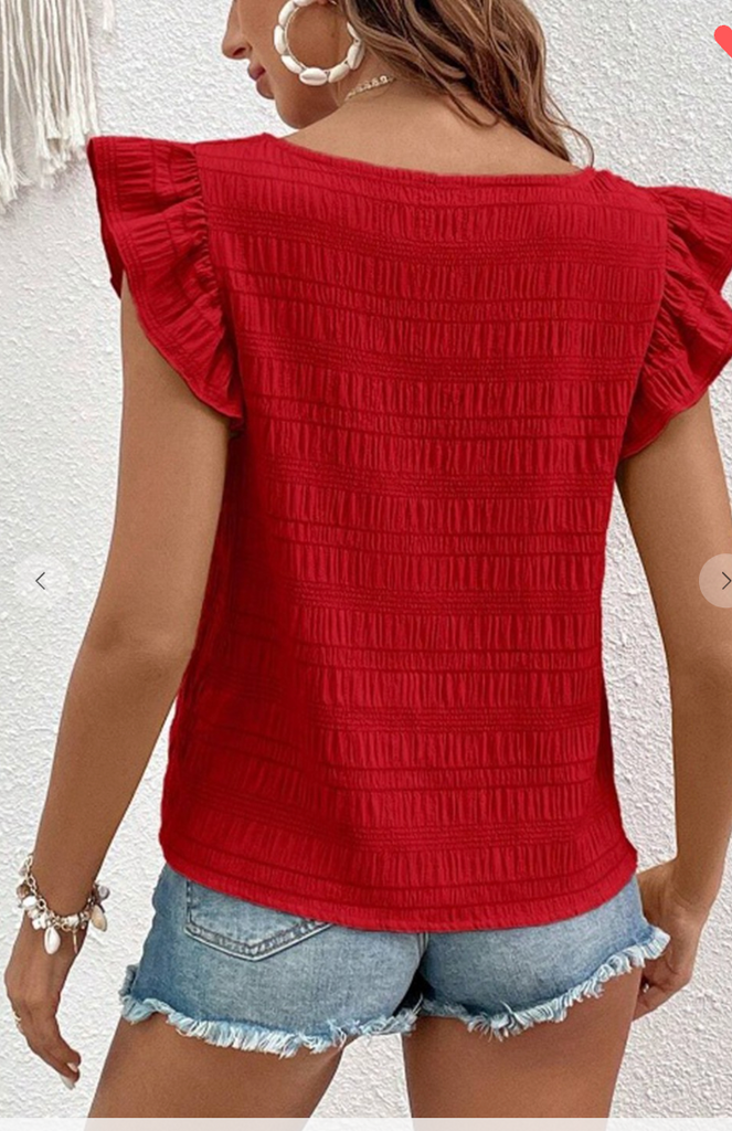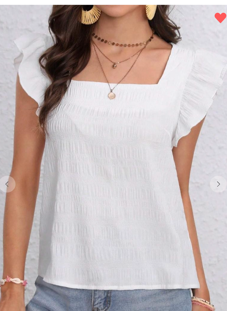 These are the BEST TOPS when it is hot! I love the Square Neck Ruffle trim, cute sleeve, great textured fabric and the array of colors!