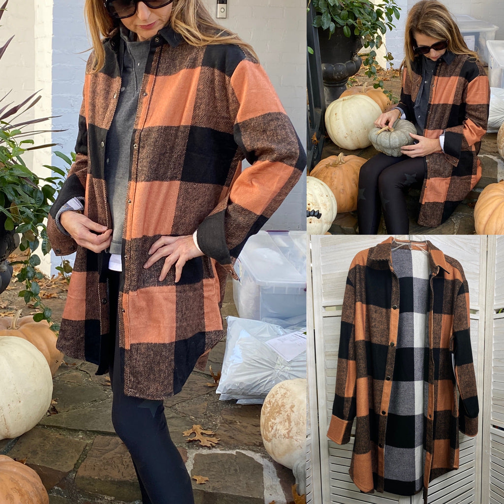 This one has a black watch plaid on the inside, gorgeous cider color and black plaid on the outside, and high quality snaps down the front and on the sleeves. This one is one of the best quality flannels I have seen! Perfect for you Thanksgiving Day Weekend Outfit!
