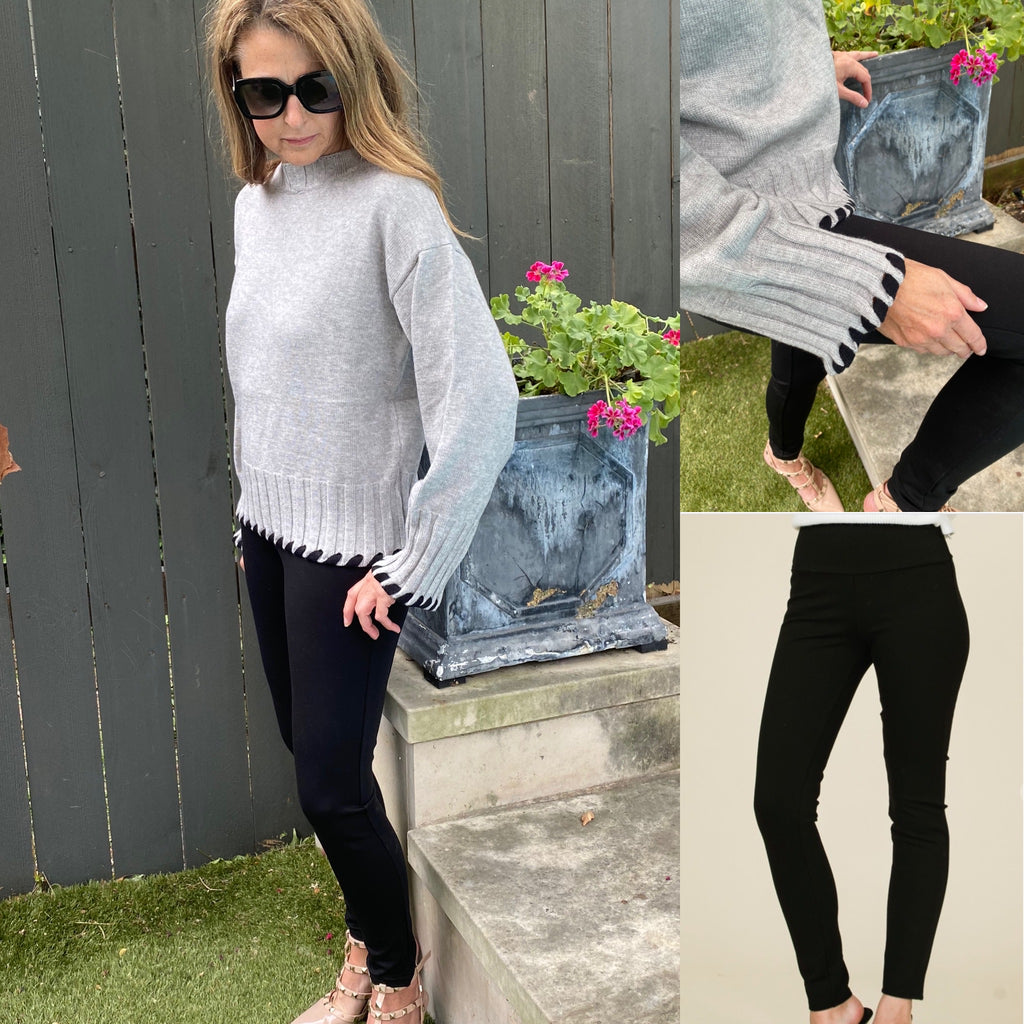 The PANTS we paired it with! OH MY GOODNESS! These are your GO TO!!  A Full length, high waisted ponte leggings that are amazing. A high waist (that can also be folded over) holds you and makes you feel like a million bucks. You will LOVE and wear with absolutely everything this fall. From tees to sweaters to sweatshirts they are amazing.
