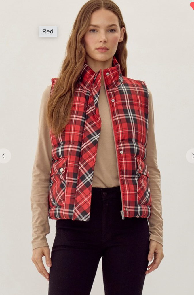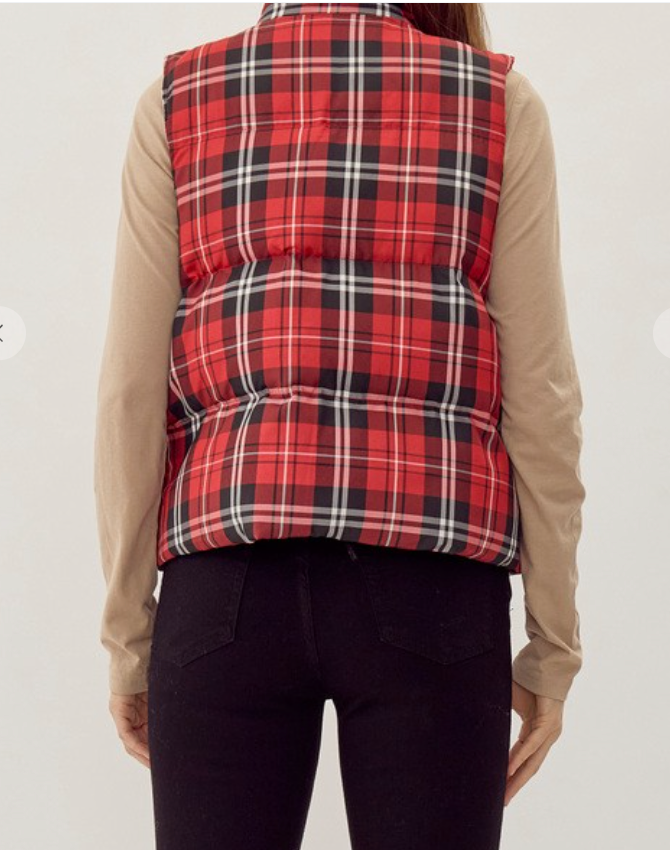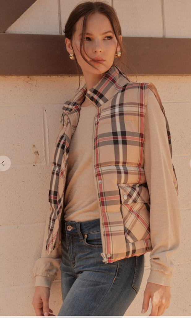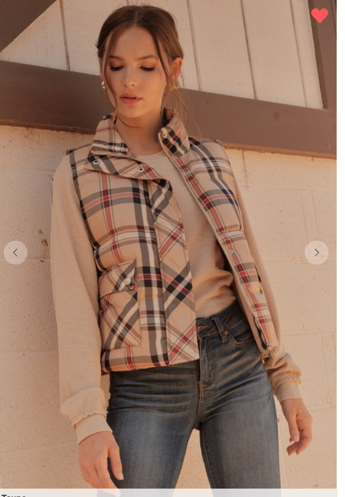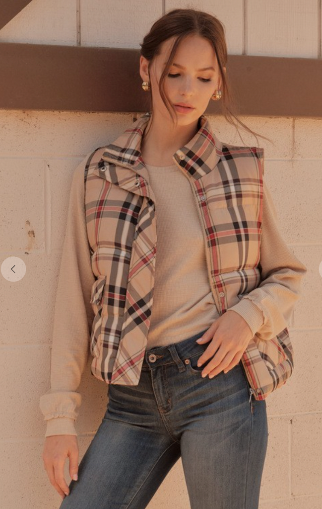 ADORABLE Our. newPlaid check print padded vest with high collar,