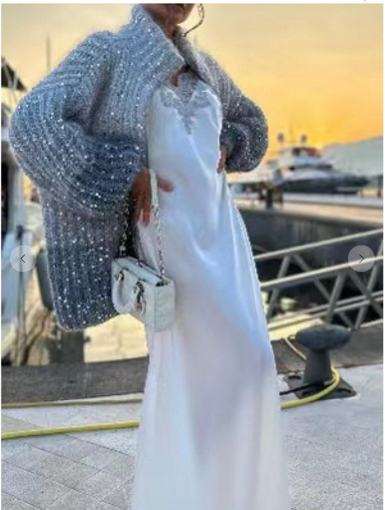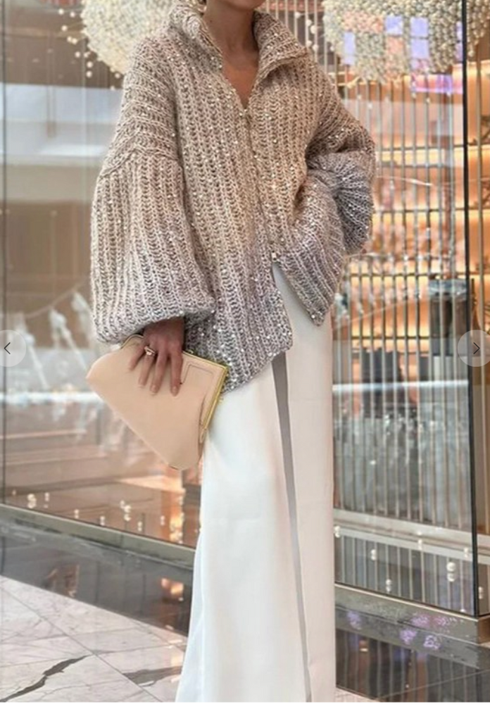 Long Sleeve Loose Knit Comfortable Sparkling Sequined V-neck