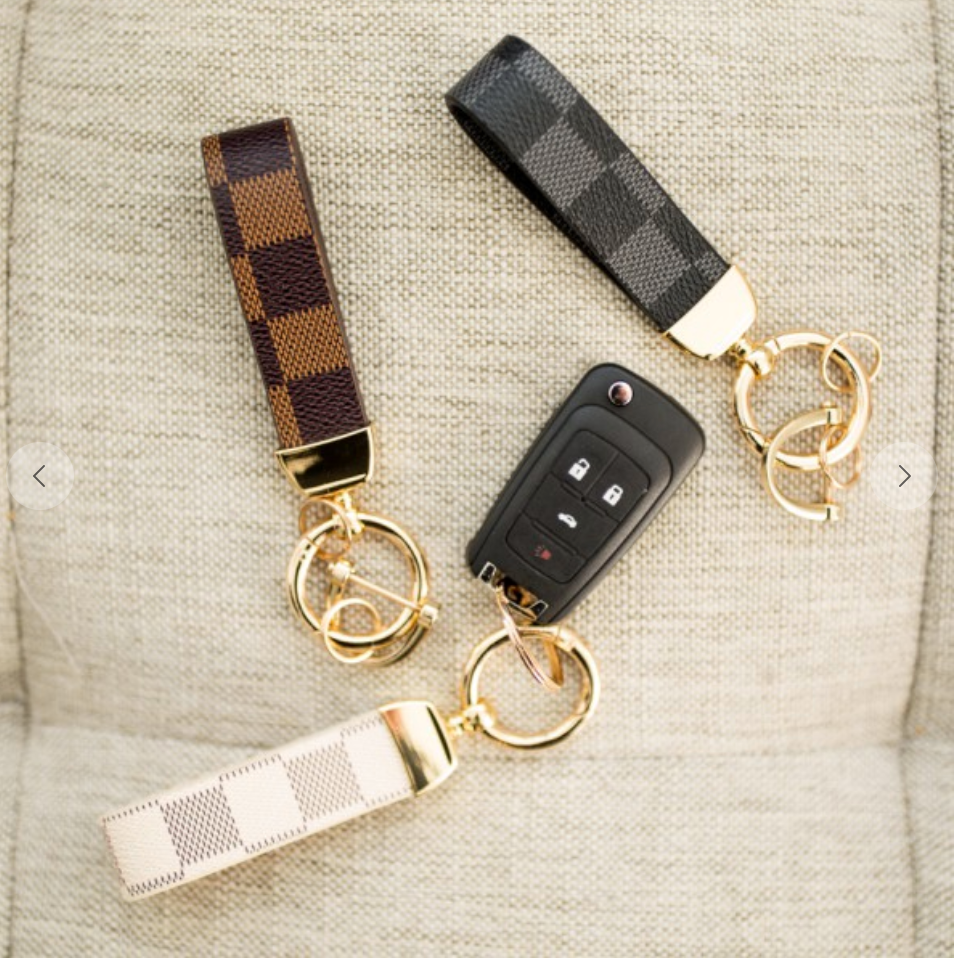 Carry your keys in style with our Checker Key Fob. Featuring Gold hardware
