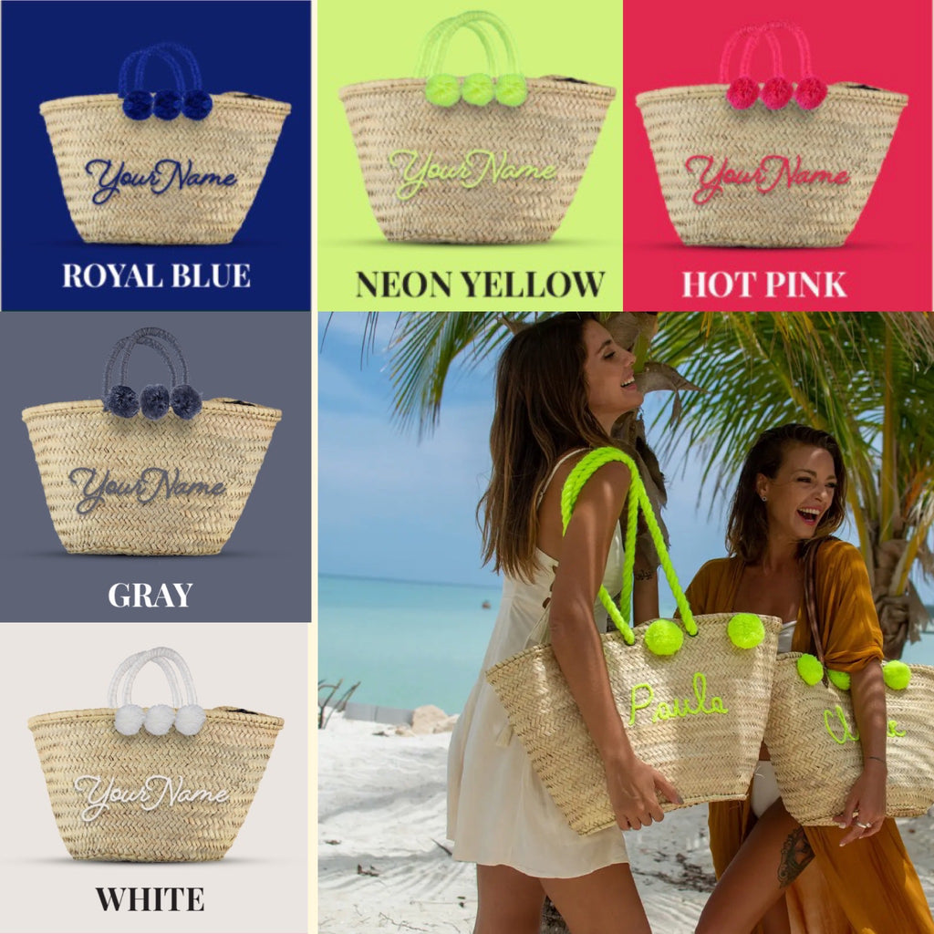This Monogrammed Bag with Pompoms is a French market-style bag that has been handwoven by artisans in Marrakech, Morocco, using palm leaves. Pretty and practical, this tote is perfect for a weekend getaway to the beach, or a day in the market.