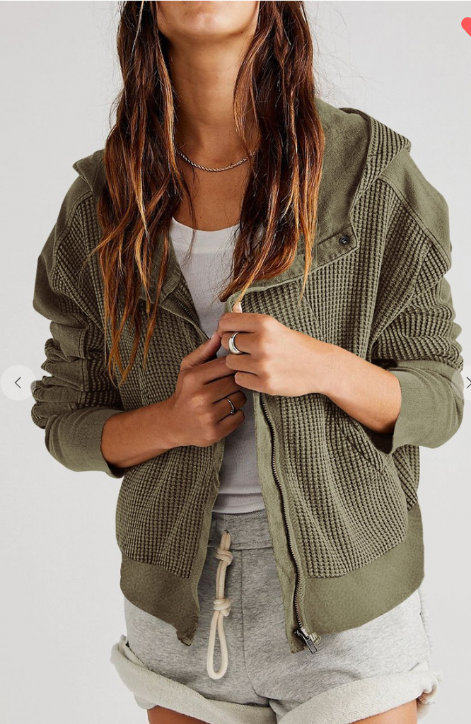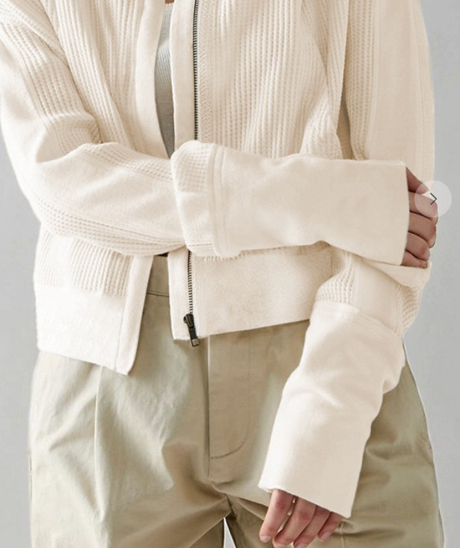 It has a cardigan body and waffle knit fabric that take a timeless look modern and sophisticated