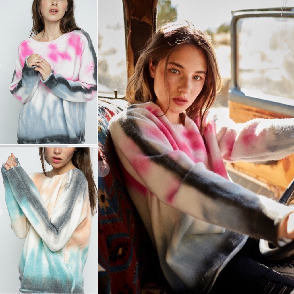 Love this Cute and Colorful Sweater to warm up any Dreary Fall or Winter Days ahead! Color is ALWAYS in and this Multicolored tie-dye sweater in relaxed fit does not disappoint!